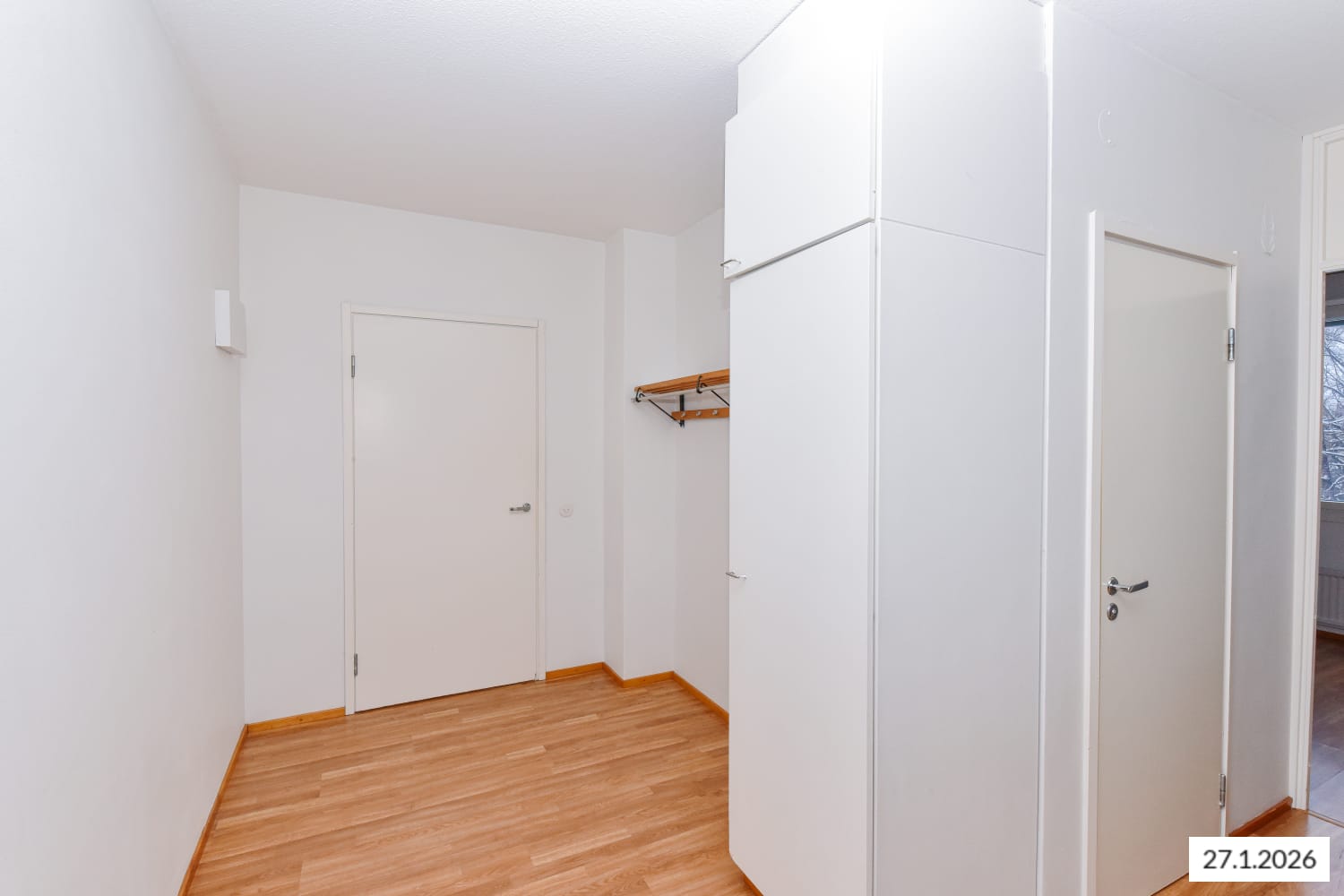 Kivenheiton päässä Espoon keskuksen juna-asemasta sijaitsevan kerrostalon kaikissa huoneistoissa on hyvin säilytystilaa ja kylpyhuoneissa paikka pesukoneelle.
