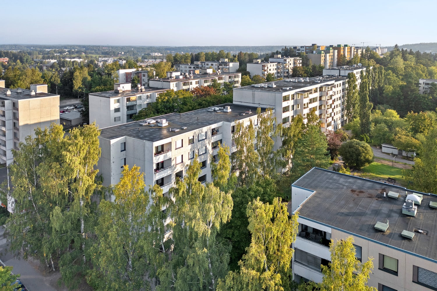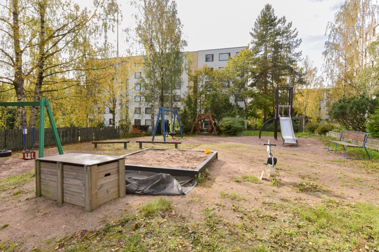 Kivenheiton päässä Espoon keskuksen juna-asemasta sijaitsevan kerrostalon kaikissa huoneistoissa on hyvin säilytystilaa ja kylpyhuoneissa paikka pesukoneelle.