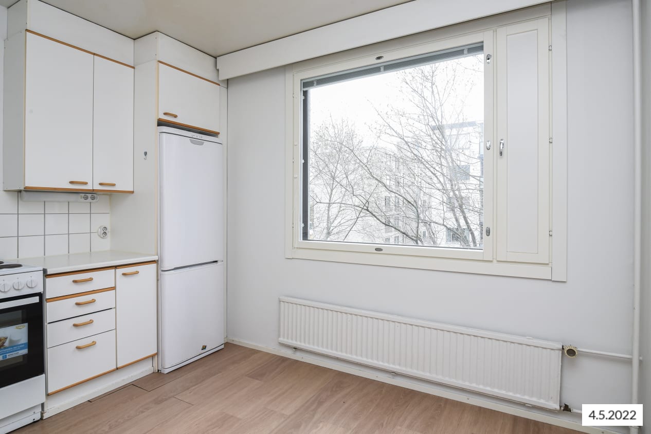 Juna-aseman ja päivittäispalveluiden tuntumassa sijaitseva läpitalon asunto on tilava ja selkeäpohjainen. Isosta olohuoneesta pääsee suojaisalle parvekkeelle. Keittiössä on jää-pakastinkaappi ja kolmilevyinen sähköliesi.