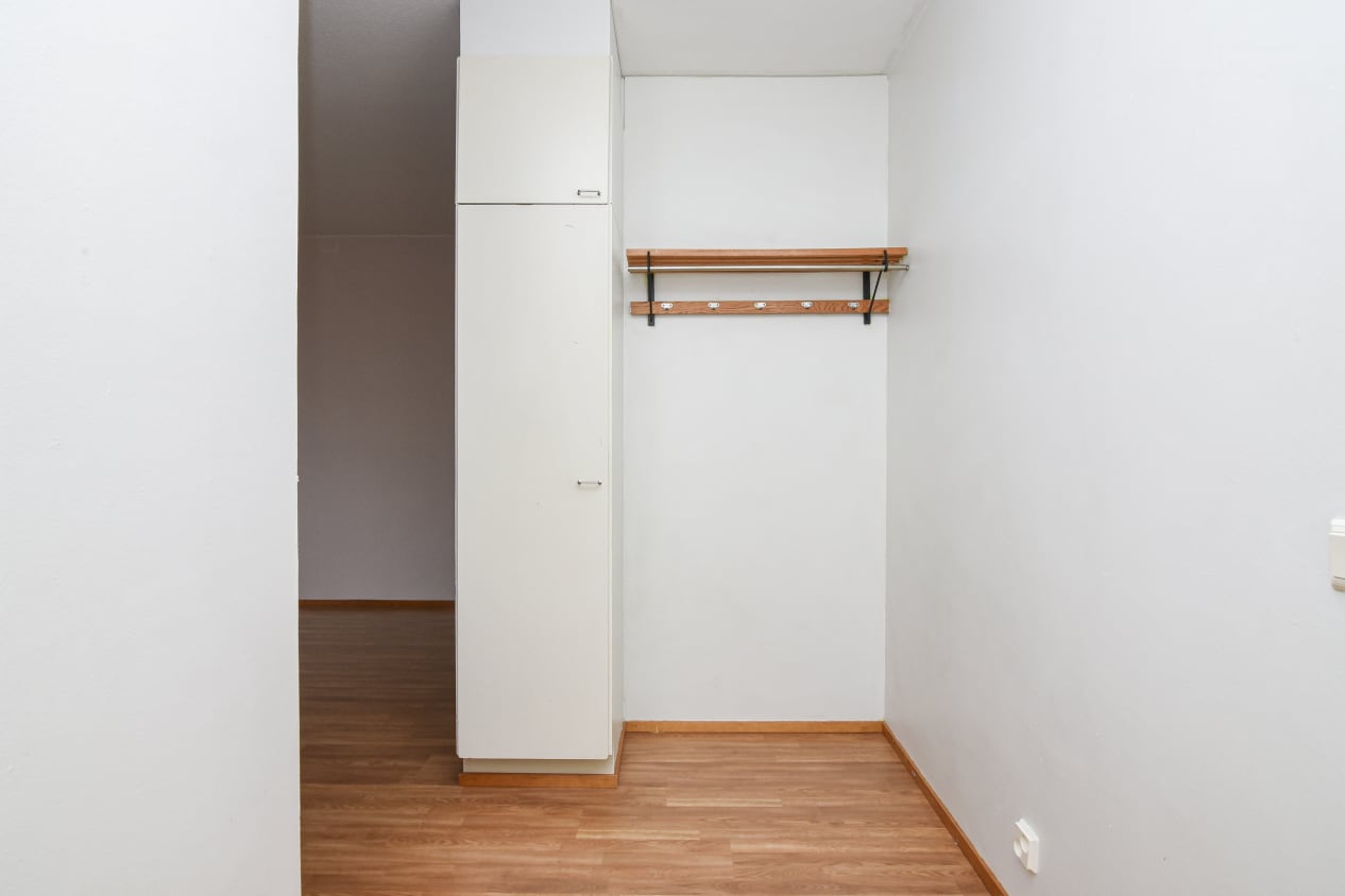 Kylpyhuone on tyylikkäästi kokonaan kaakeloitu ja siellä on tilavaraus pyykinpesukoneelle. Kylpyhuoneessa on kylpyamme. Kodin vaaleasävyiset materiaalit toimivat neutraalina pohjana mille tahansa sisustustyylille. Olisiko tämä sinun uusi vuokrakotisi?