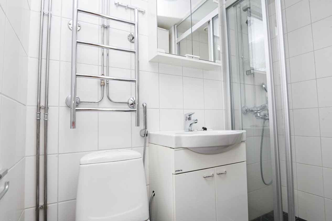 Valoisa 1950-luvun koti ihastuttaa omalla ilta-aurinkoon avautuvalla pihaterassillaan. Kompaktiin keittiöön mahtuu mainiosti aamiaispöytä ja luonnonvalo pääsee sisään yläikkunasta. Alkovi helpottaa asuinhuoneen sisustamista ja eteinen suodattaa porraskäytävän melut.