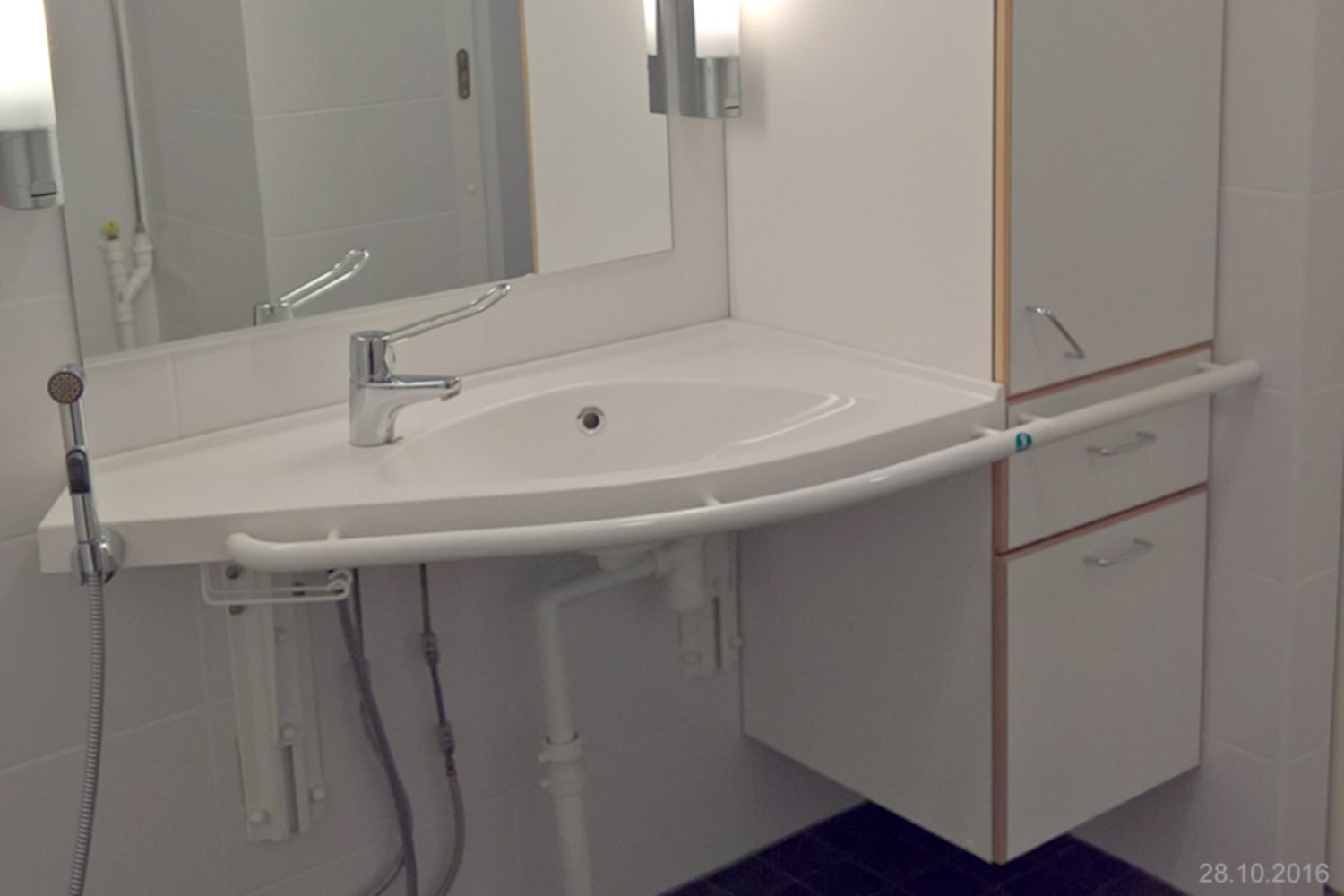 Asuinhuoneissa on tammilaminaattilattiat. Seniorivarustellussa kylpyhuoneessa on isoilla valkoisilla laatoilla kaakeloidut seinät ja tummanharmaa laattalattia. Keittokomerossa on kiiltävänvalkoinen yläkaapisto, tyylikkään tummanharmaa alakaapisto ja tummanharmaa työtaso laminaattia. Tason ja kaapiston välissä keittokomeron ilmettä keventää valkoinen lasipinta. Vakiovarusteina jää-pakastinkaappi, astianpesukone, tasoliesi ja kalusteuuni.