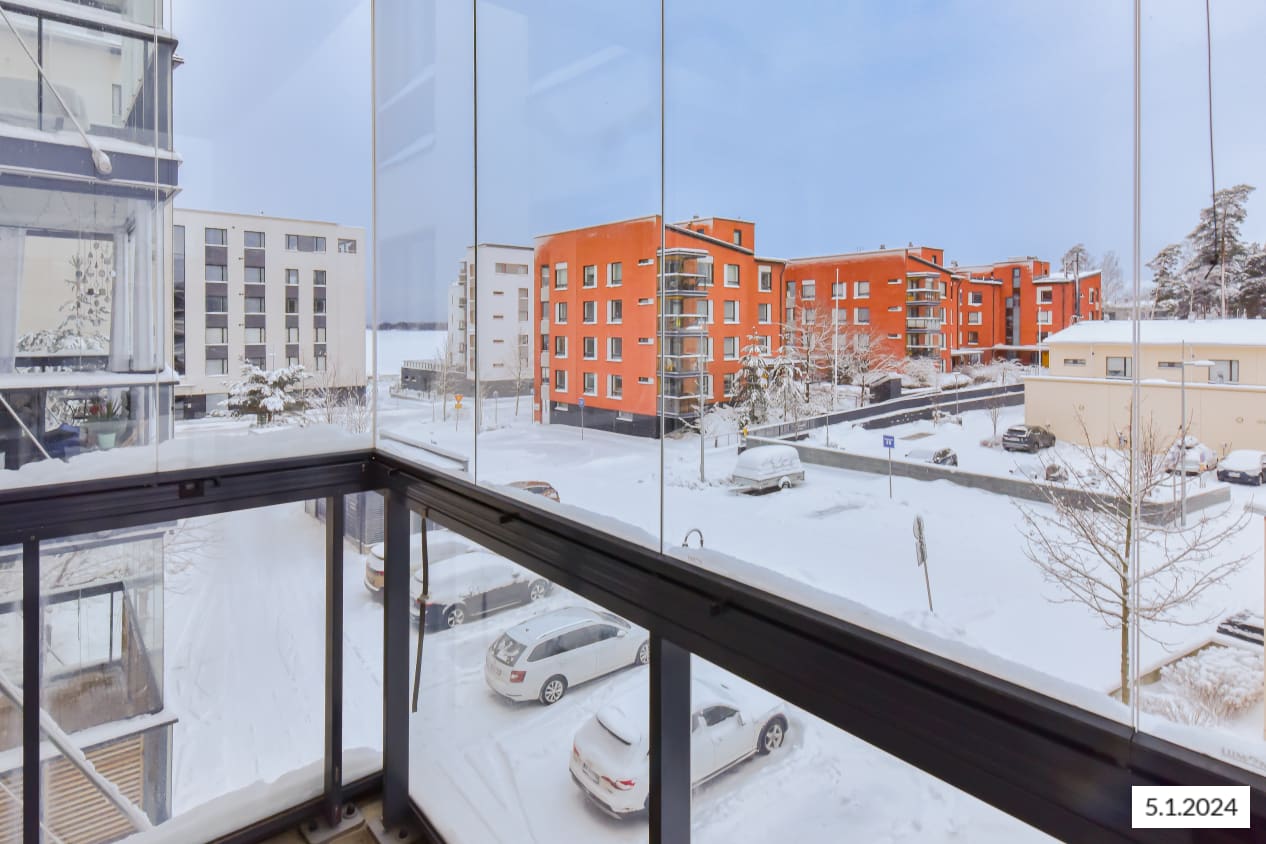 Viihtyisällä asuinalueella, Uutelan kanavan tuntumassa sijaitsevan kaksion valtti on valoisa olohuone, johon mahtuu sohvaryhmän lisäksi mukavasti myös pieni ruokapöytä. Asunnon lasitettu ja tilava parveke avautuu lounaaseen kohti merta, joka näkyy talojen välistä.
