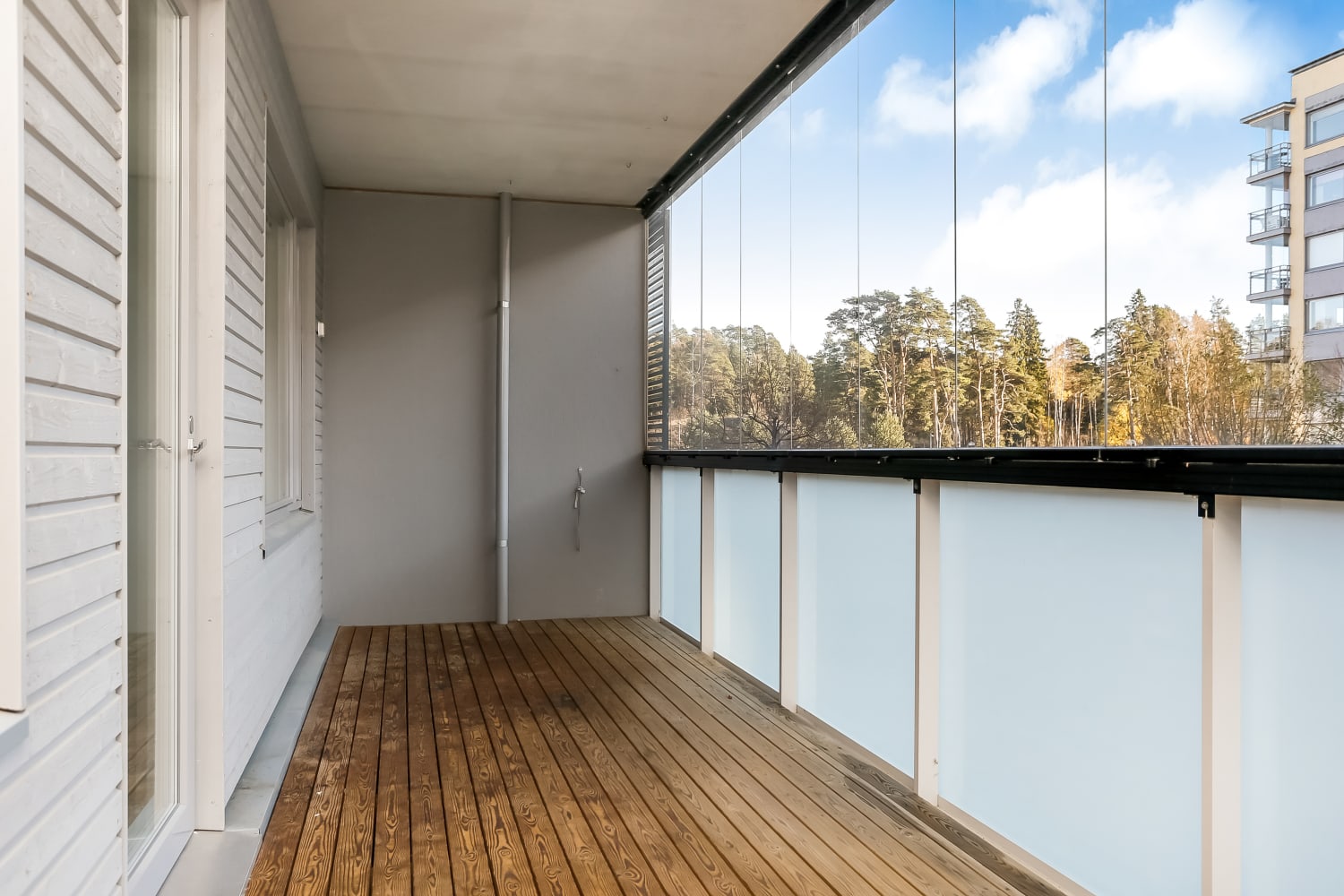 Tämän tyylikkään kaksion avaruutta lisää upea lasitettu parveke, joka avautuu eteläkaakkoon pihan puolelle. Selkeä, hukkaneliötön pohjaratkaisu ilahduttaa helppoudellaan ja asumisviihtyisyyttä lisäävät mukavuuslattialämmitetty sinisin mosaiikkiboordein ja valkoisin laatoin kaakeloitu kylpyhuone sekä asuinhuoneiden lämminsävyinen lautaparkettilattia.