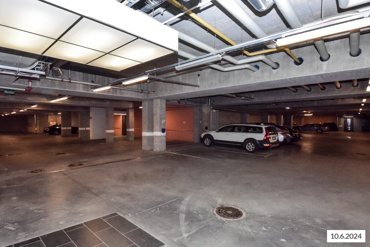 Huoneiston vuokrasopimukseen kuuluu yksi autohallipaikka. Taloyhtiössä on asukkaiden käytöön myös kuntosali.