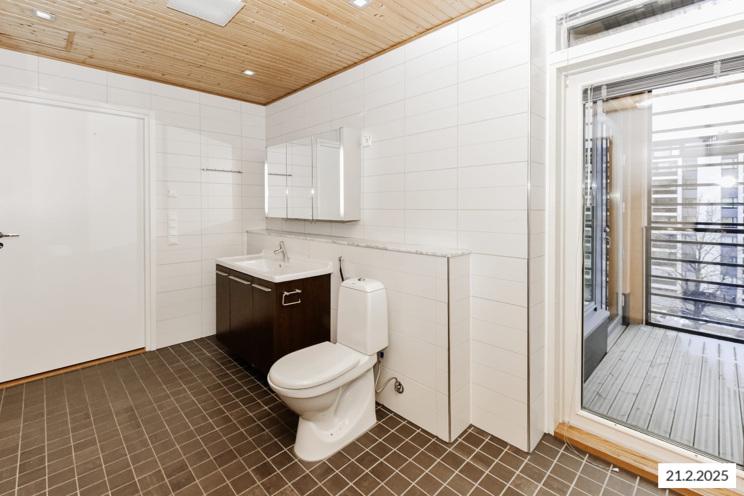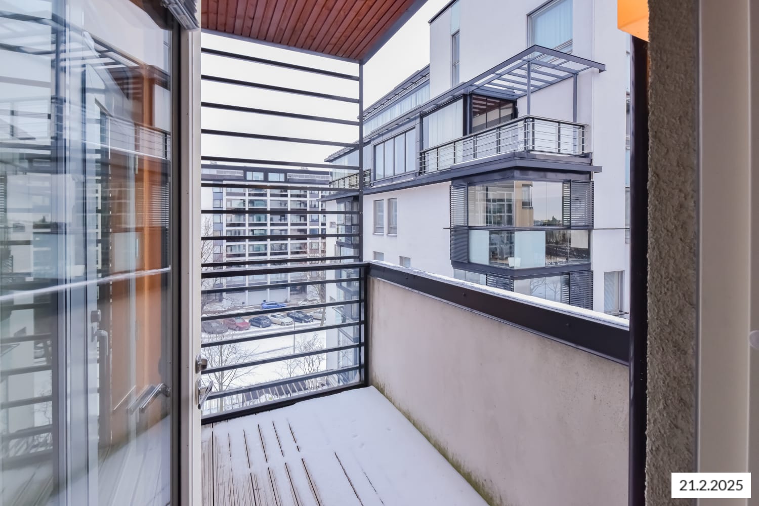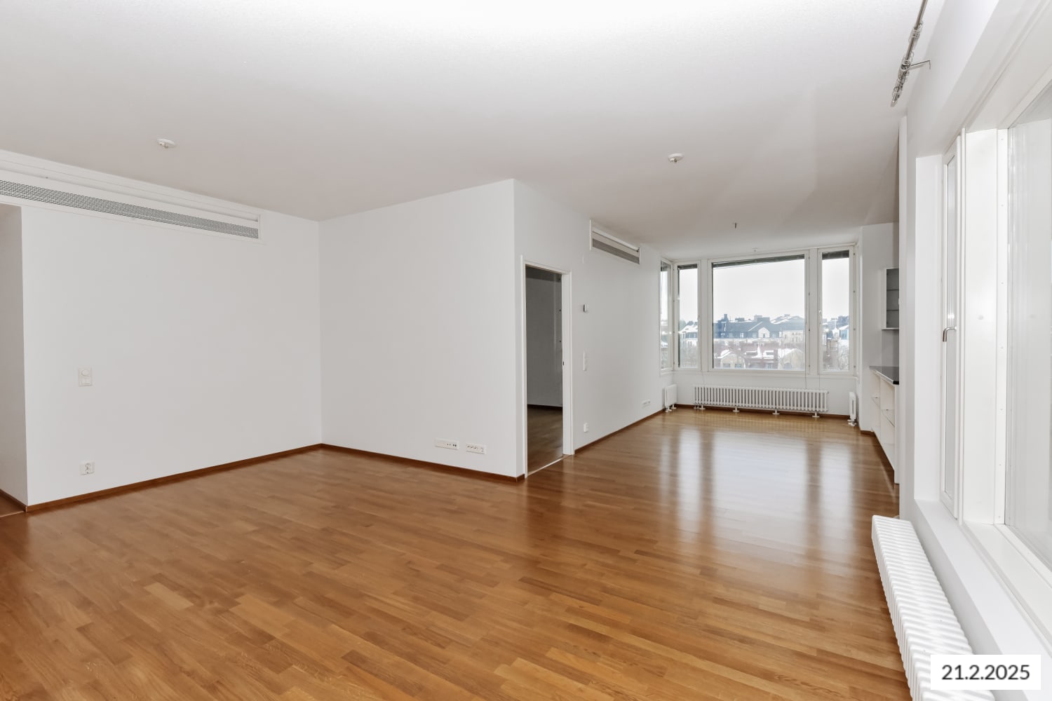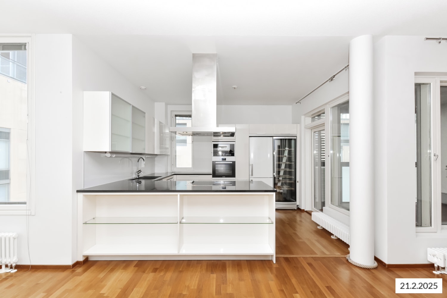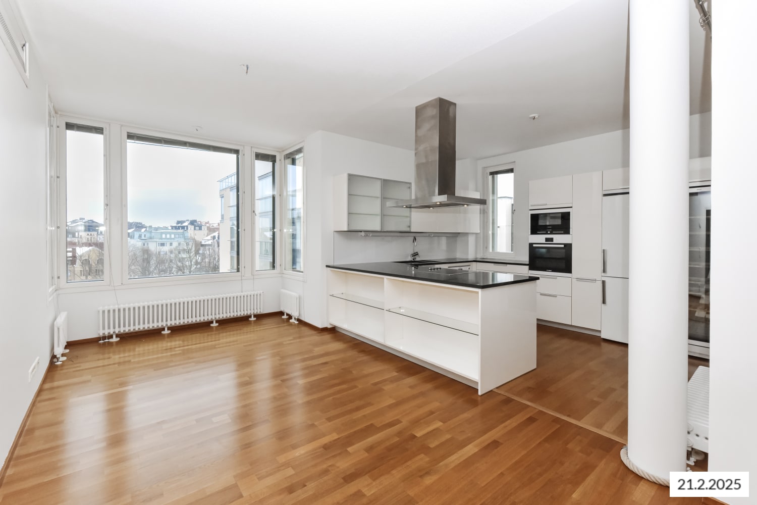 Tyylikkään tilavassa kolmiossa on useita silmää hiveleviä yksityiskohtia. Linjakkaan keittiön erkkeri-ikkunasta avautuu komea näkymä kohti puistoa ja Agricolankirkkoa, valoisasta saunaosastosta pääsee helposti vilvoitteluparvekkeelle ja isommalta, lasitetulta parvekkeelta avautuu esteetön näkymä eteläkaakkoon Piritanaukiolle.