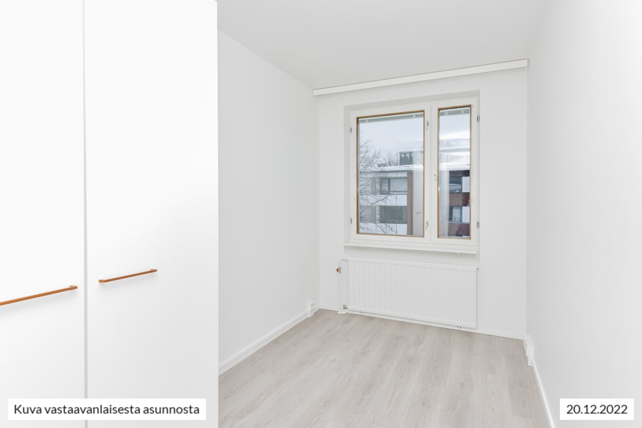 Makuuhuoneista näkymät ovat itään, Ansaritielle päin. Arjen luksusta on eteisen vaatehuone, jossa on runsaasti tilaa tavaroiden säilytykseen.