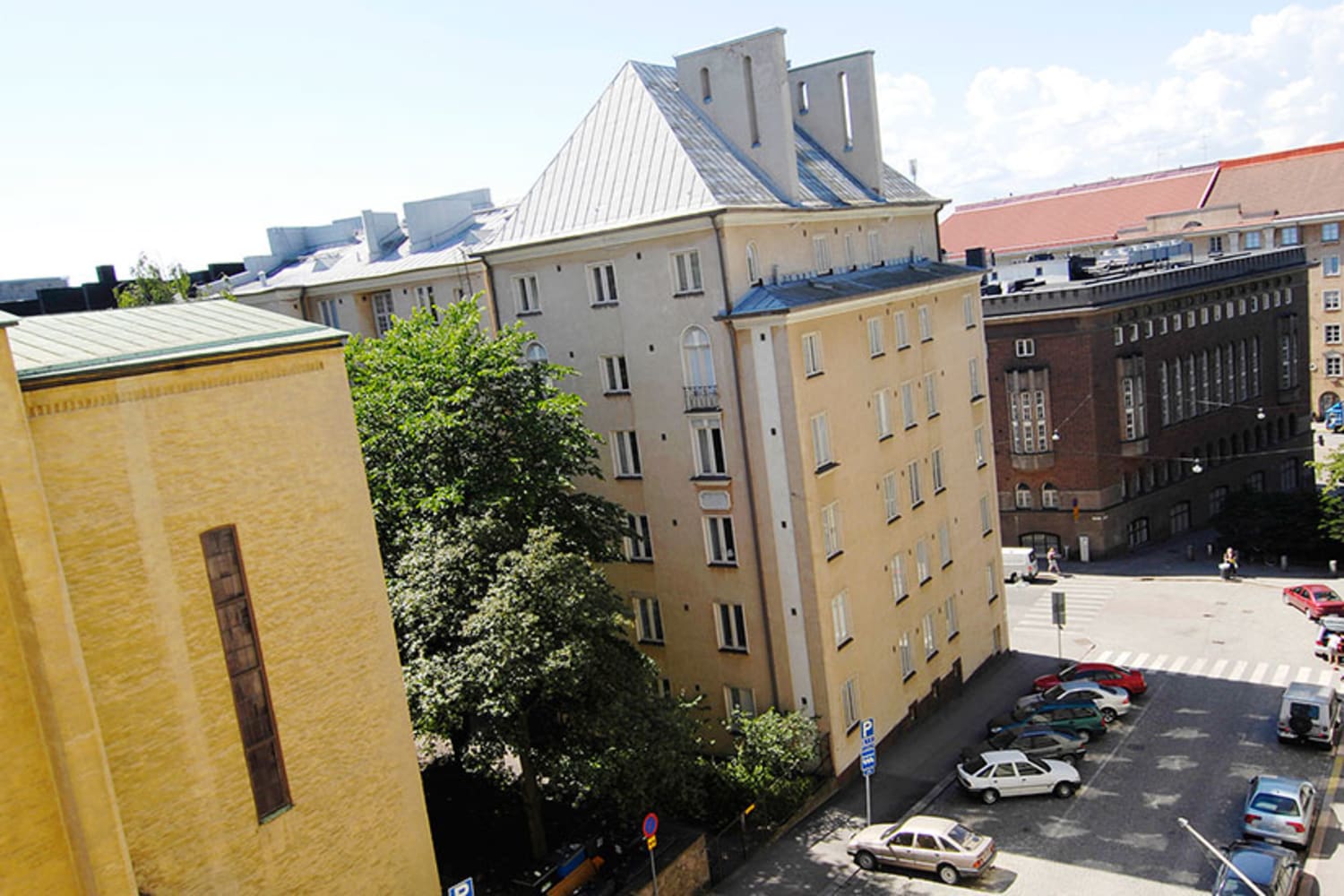 Halutulla paikalla keskustan tuntumassa sijaitseva kaksio on seesteinen ja raikas. Asunnon ikkunoista avautuu klassinen töölöläisnäkymä etelään Olaus Petrin kirkolle.