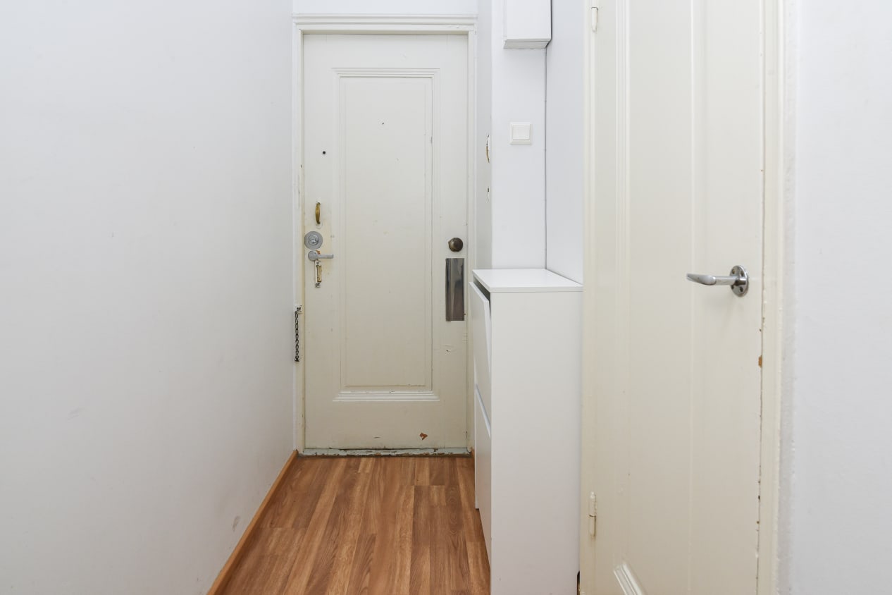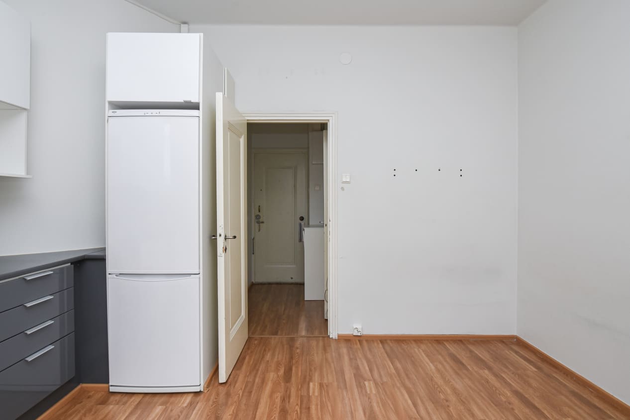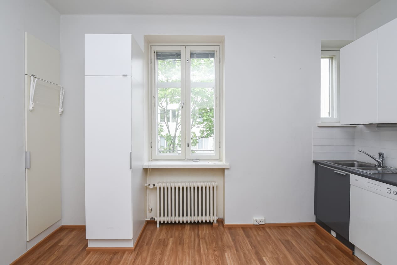 Loistosijainti, avaran sisäpihan puolelle antavat ikkunat, neliöihinsä nähden tilavan oloinen ja fiksusti jäsennelty pohjaratkaisu sekä hyvin varusteltu keittoseinäke tekevät tästä pikkukodista tavoittelemisen arvoisen! Isommassa ikkunassa on sälekaihtimet ja eteisen väliovi suodattaa porraskäytävän äänet kuulumattomiin.