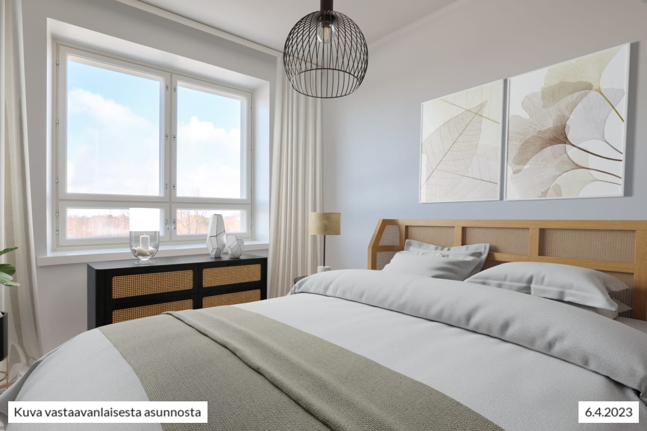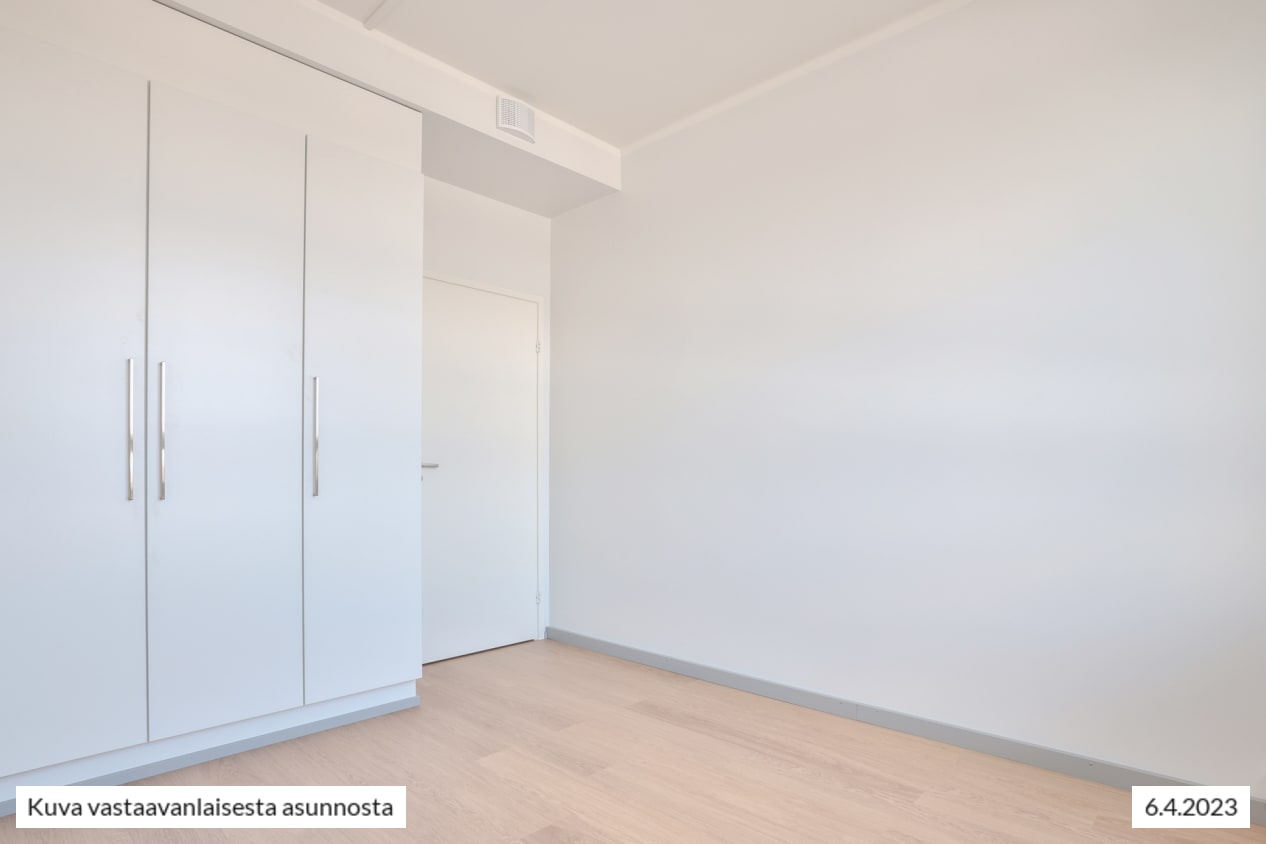 Käytännöllinen tilajako tarjoaa monia vaihtoehtoja kalustaa juuri oman näköinen, persoonallinen koti. Kaksio sopii myös jaetuksi asunnoksi, sillä molemmissa huoneissa on kaappitilaa ja väliovi. Siivouskaappi ja tilaa ulkovaatteille löytyy eteisestä.