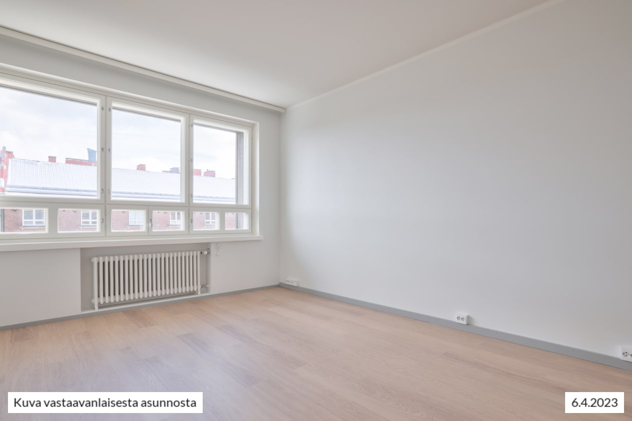 Valoisassa, läpitalon kaksiossa on erittäin toimiva pohjaratkaisu. Vanhan kivitalon tavallista korkeampi huonekorkeus sekä syvät ikkunapenkit luovat avaruutta ja tunnelmaa. Puupuitteisista ikkunoista suorastaan tulvii valoa. Ikkunalaudoilla on tilaa sekä viherkasveille että sisustusesineille, ja niiltä löytyy varmasti myös monen lemmikin lempitähystyspaikka.