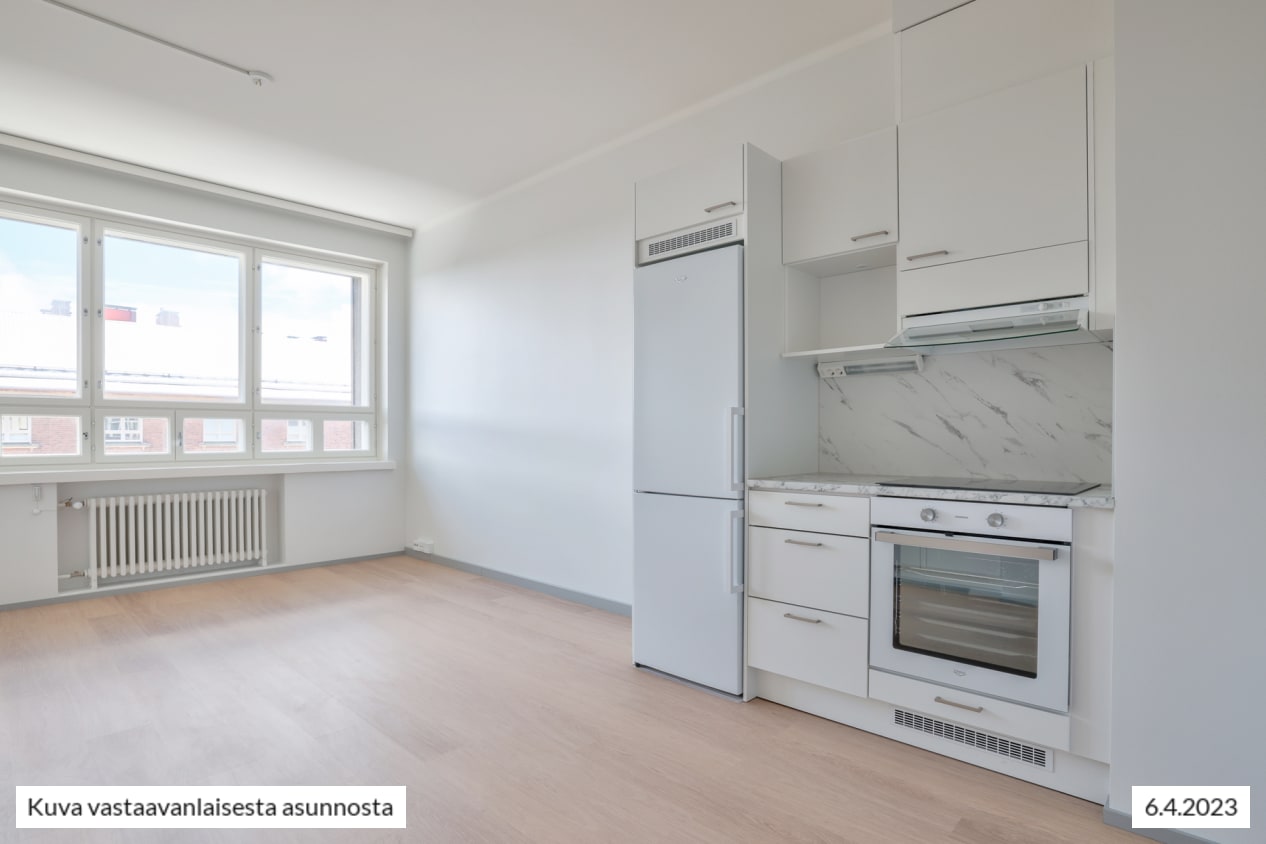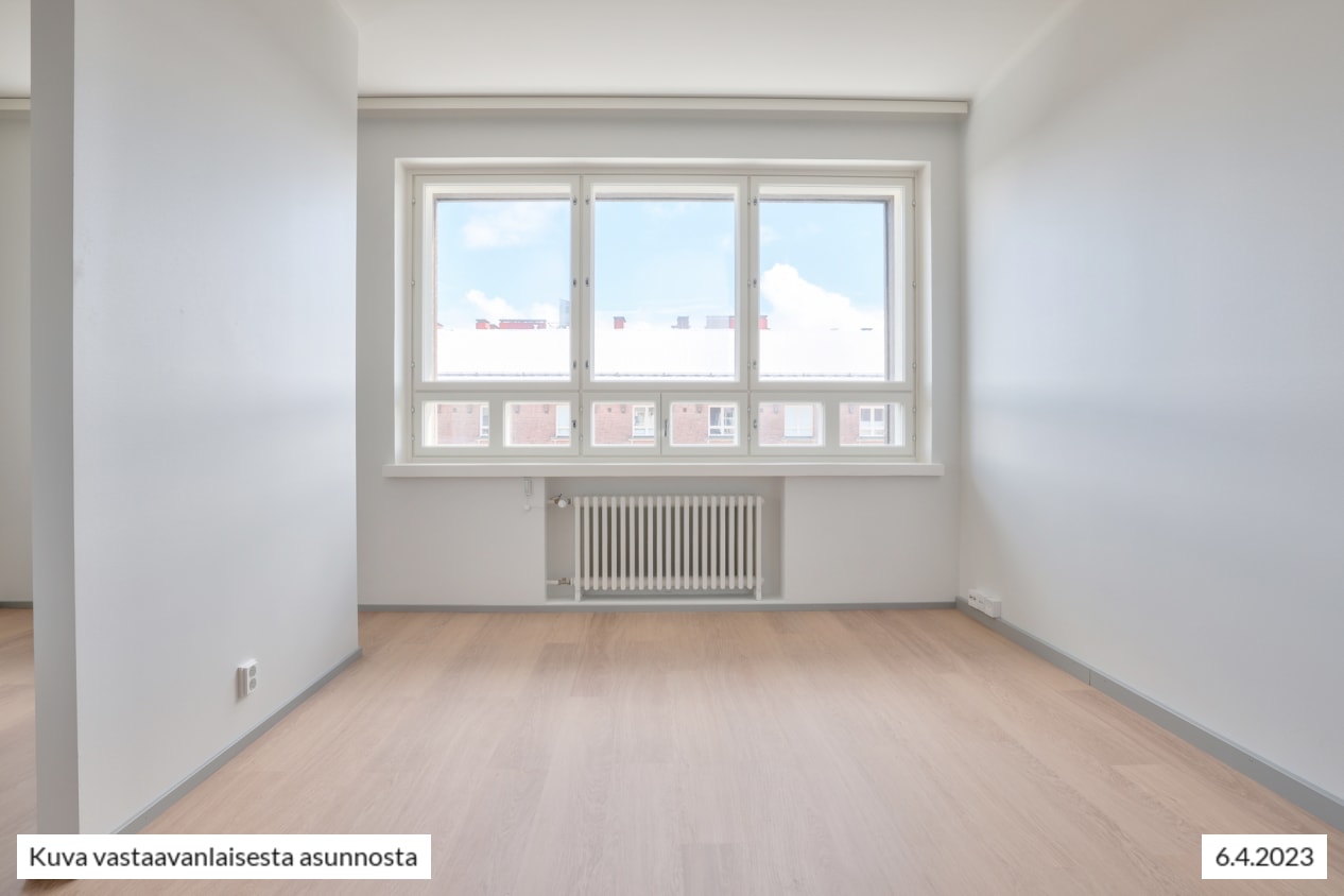 Valoisassa kaksiossa on erittäin toimiva pohjaratkaisu. Vanhan kivitalon tavallista korkeampi huonekorkeus sekä syvät ikkunapenkit luovat avaruutta ja vanhan ajan tunnelmaa. Puupuitteisista ikkunoista suorastaan tulvii valoa. Ikkunalaudoilla on tilaa sekä viherkasveille että sisustusesineille, ja niiltä löytyy varmasti myös monen lemmikin lempitähystyspaikka.