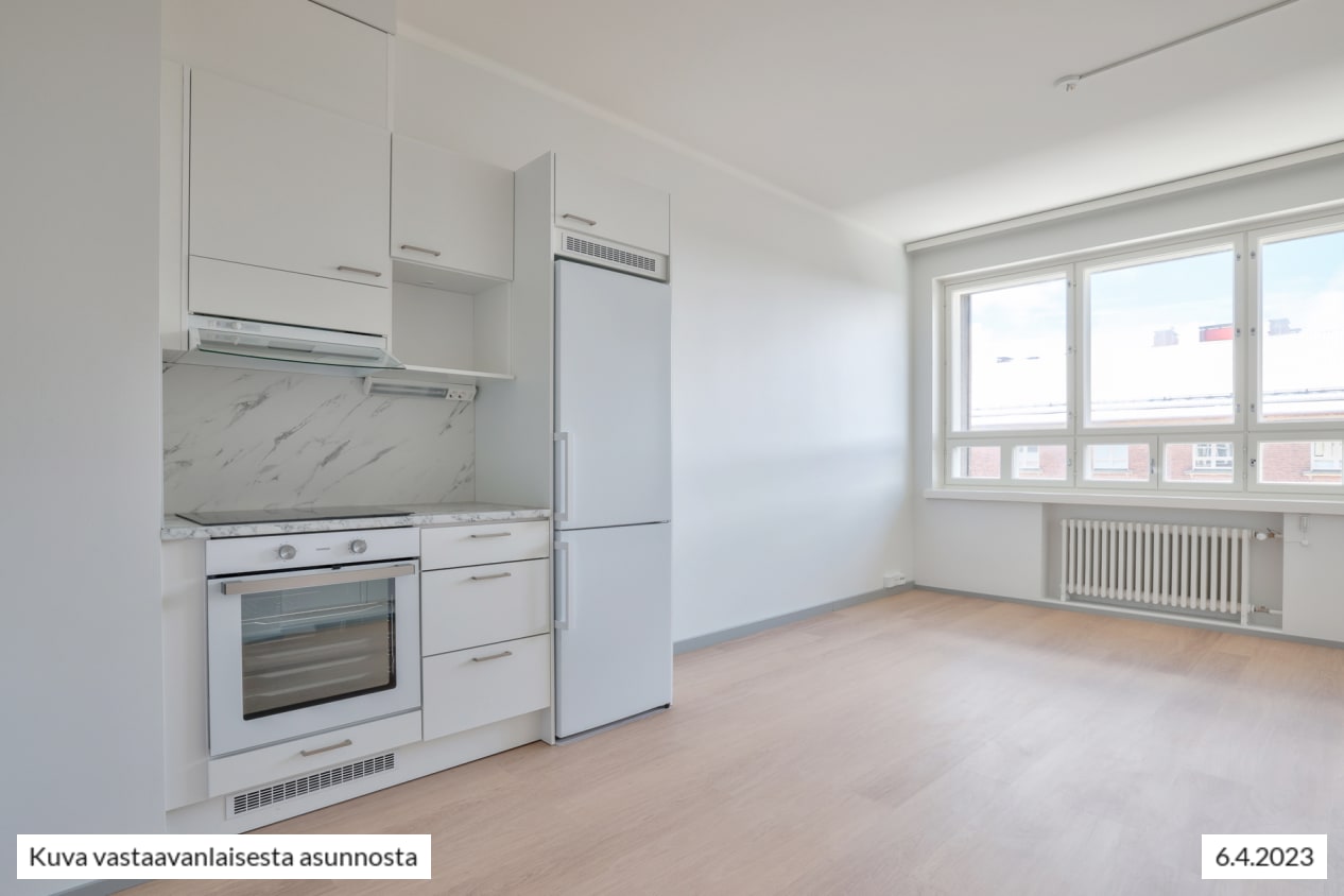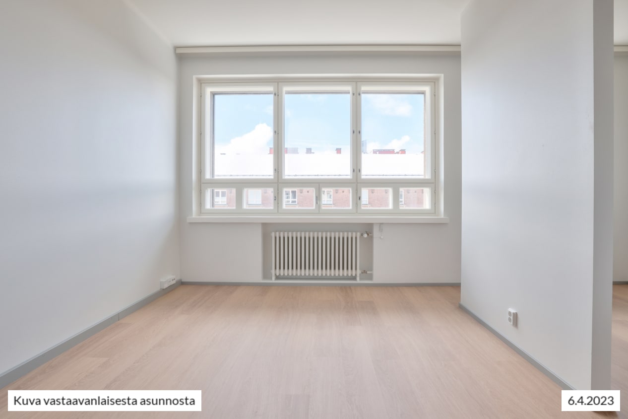 Valoisassa kaksiossa on erittäin toimiva pohjaratkaisu. Vanhan kivitalon tavallista korkeampi huonekorkeus sekä syvät ikkunapenkit luovat avaruutta ja vanhan ajan tunnelmaa. Puupuitteisista ikkunoista suorastaan tulvii valoa. Ikkunalaudoilla on tilaa sekä viherkasveille että sisustusesineille, ja niiltä löytyy varmasti myös monen lemmikin lempitähystyspaikka.