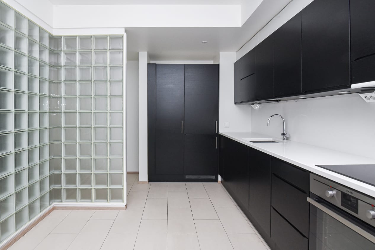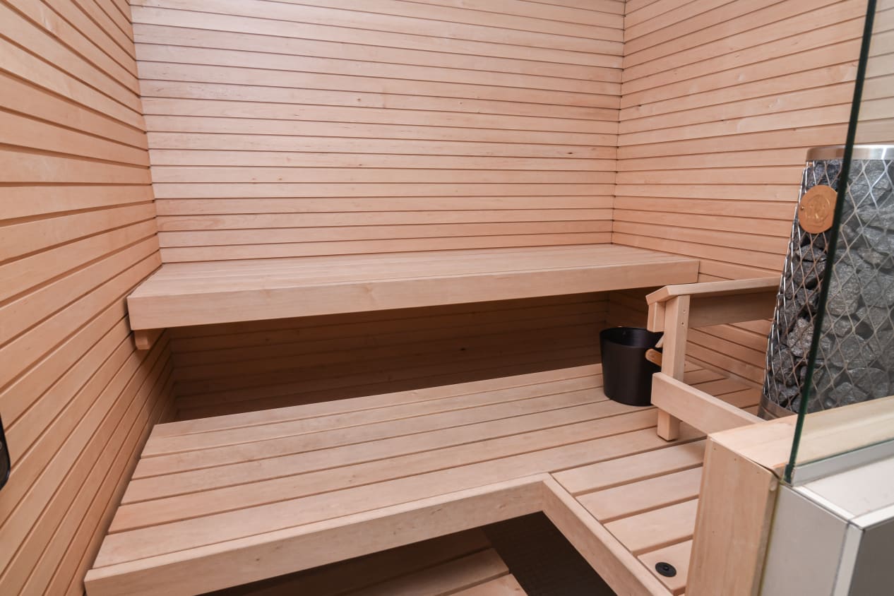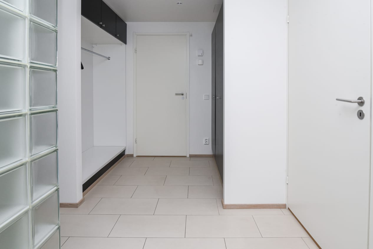 Tyylikkään kodin keittiö on avoin olohuoneen suuntaan ja ruokapöytä sopii lasitiiliseinien rajaamaan kulmaukseen. Suojaisan pihan puolelle avautuvalle lasitetulle parvekkeelle pääsee makuuhuoneesta. Eteinen on tilava ja siellä on mukavasti komerotilaa vaatesäilytykselle. Oman saunan löylyistä kelpaa nauttia päivän päätteeksi.