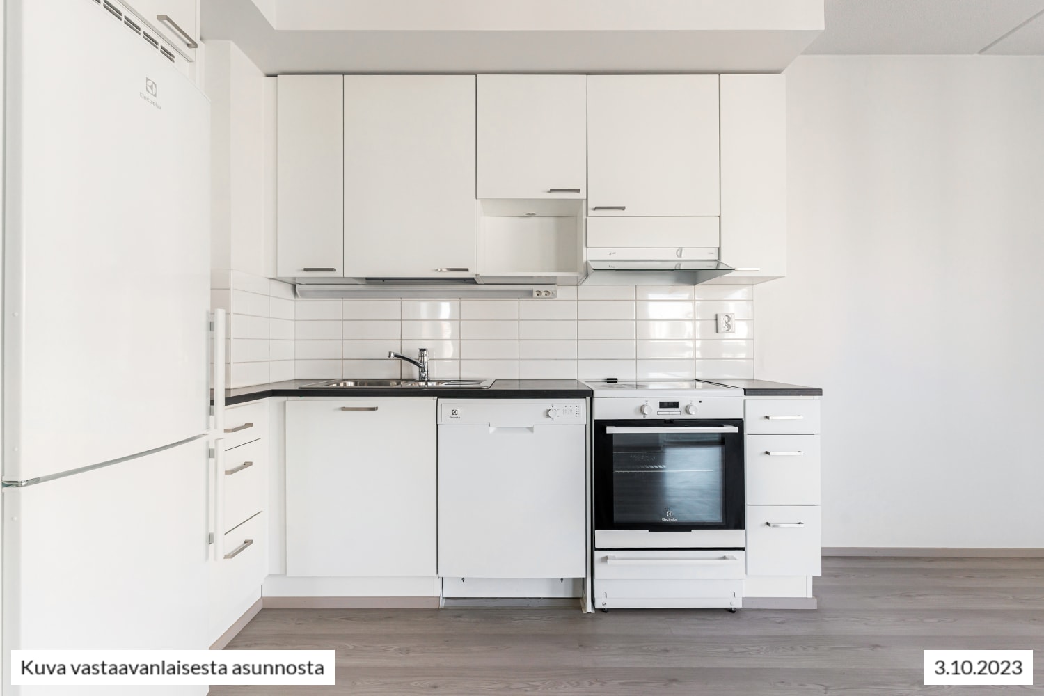 Keittiöstä löytyy induktiotaso, astianpesukone ja jääkaappipakastin, ja mikroaaltouunille on varattu oma paikkansa. Parvekkeet on lasitettu.
