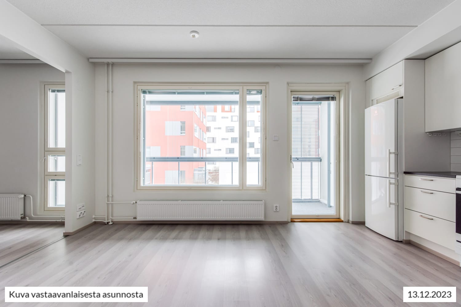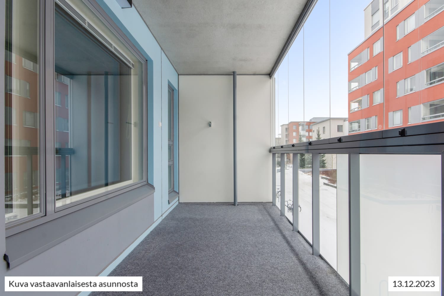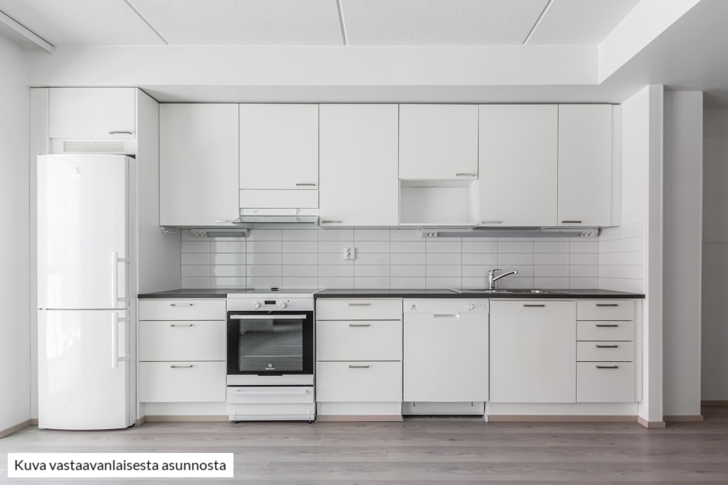 Keittiöstä löytyy induktiotaso, astianpesukone ja jääkaappipakastin, ja mikroaaltouunille on varattu oma paikkansa. Parvekkeet on lasitettu.