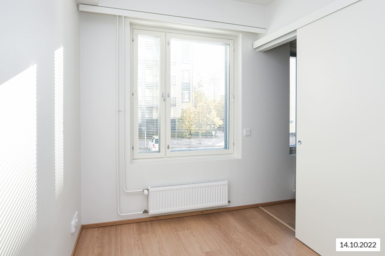 Soman pikkukaksion keittiö ja olohuone muodostavat kodin sydämen, jonka kalustat helposti oman makusi mukaisesti. Makuuhuone on erotettu olohuoneesta kahdella liukuovella ja kulku sinne käy näppärästi kummaltakin puolelta sänkyä. Vaatesäilytykselle on reilusti tilaa erillisessä vaatehuoneessa. Ranskalainen parveke tuo tilaan ilmavuutta ja luonnon valoa.