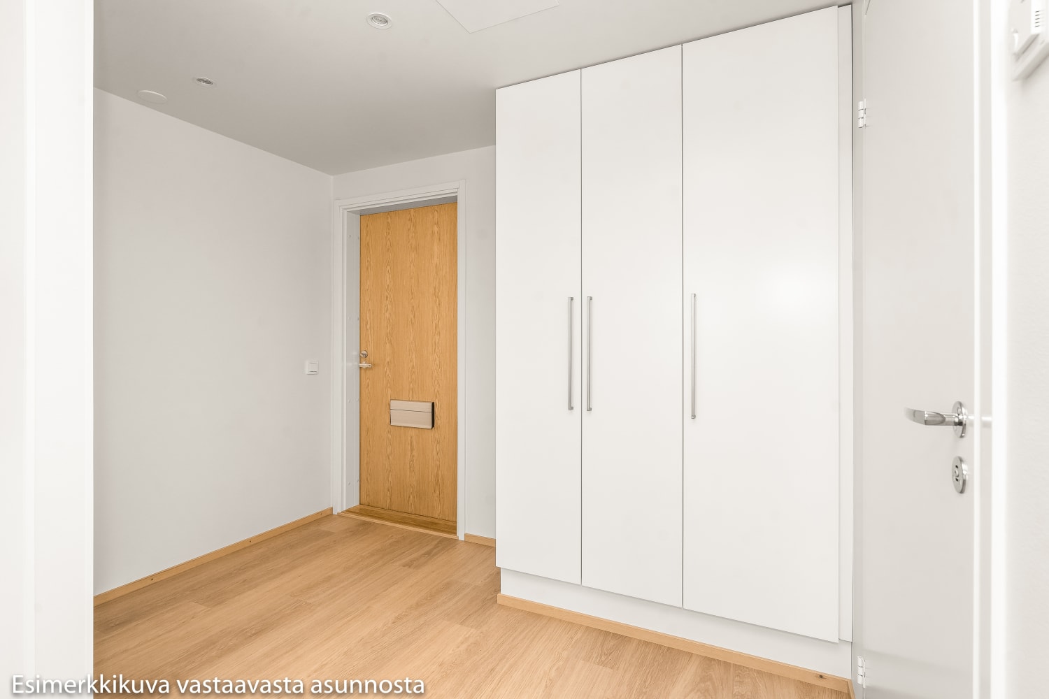 Vaaleasävyisen yksiön pohjaratkaisu antaa raamit persoonalliselle sisustamiselle. Olohuoneen toiseen päähän mahtuu ruokapöytä ikkunan alle ja mukavan makuusopen saat toiseen päätyyn komeroiden suojaan. Sisäpihan puolella olevalle lasitetulle parvekkeelle saat kivan kesähuoneen.