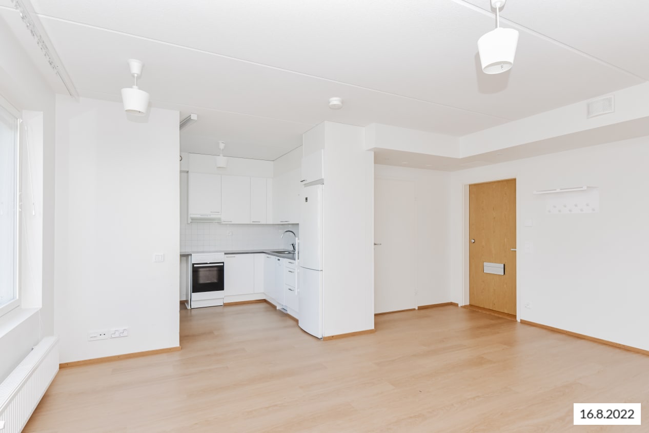 Kauniin kodin sydän on olohuoneen ja keittiön muodostama avara oleskelualue, jonka kalustat helposti oman makusi mukaiseksi. Keittiöstä astut suoraan parvekkeelle, jossa nautitut kesäiset aamukahvit ovat arjen luksusta parhaimmillaan. Makuuhuone on erotettu tilasta kahdella liukuovella ja kulku sinne käy näppärästi kummaltakin puolelta sänkyä.