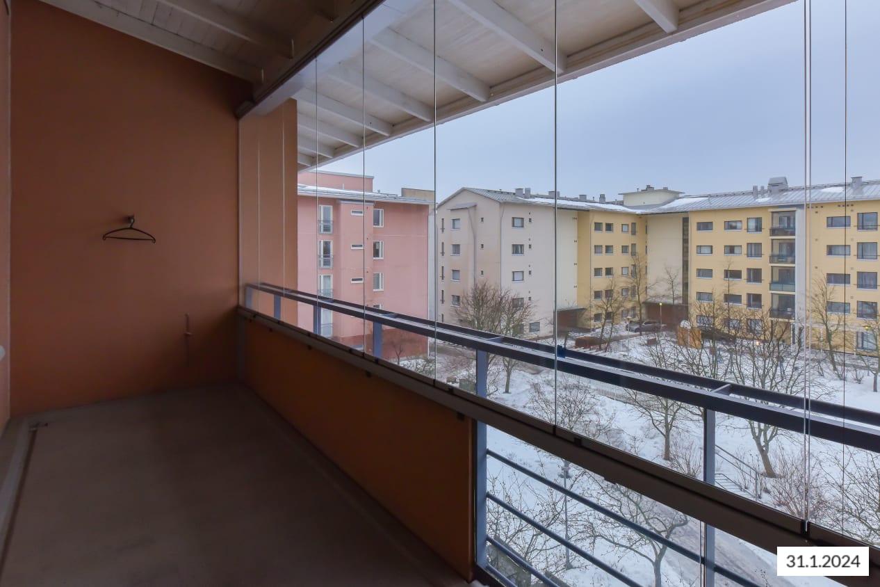 Kerrostaloasunnoissa on parveke paitsi 34,5m2:n yksiöissä, joissa on ranskalainen parveke. Asunnot ovat valoisia ja avaria ja niissä on tilavaraus pesukoneelle. Yksiöitä lukuun ottamatta huoneistoissa on liitännät myös astianpesukoneelle ja mikroaaltouunille. Keittiöllisissä asunnoissa on ikkunallinen sauna.