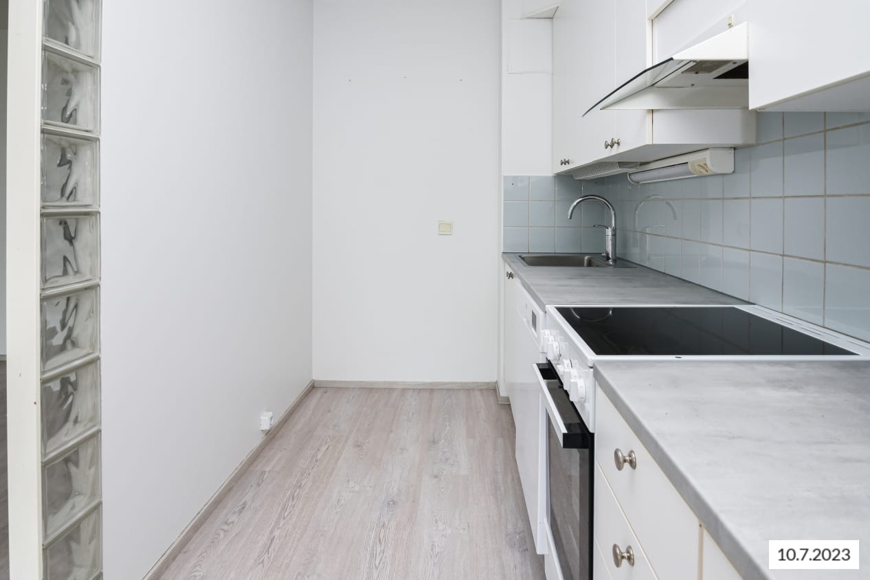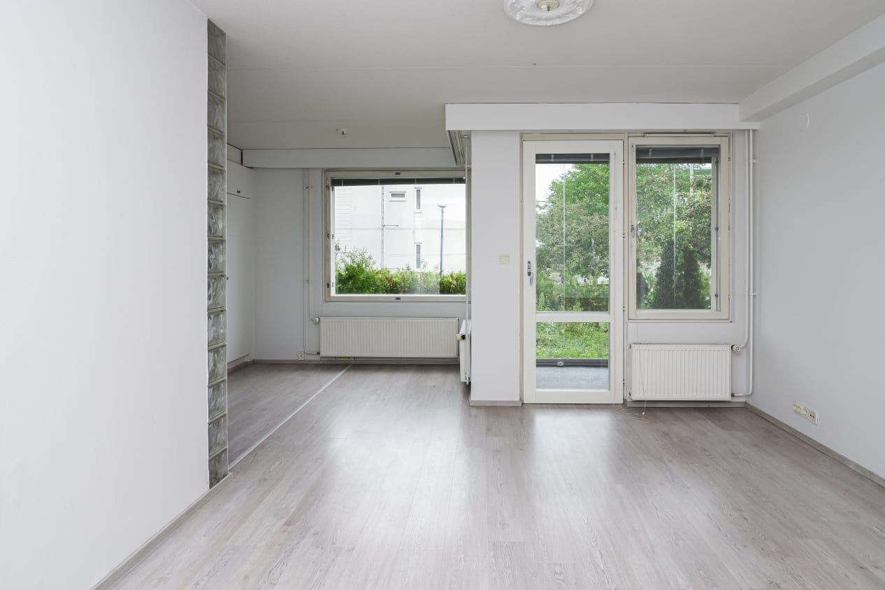 Viihtyisän Herttoniemenrannan maisemissa odottaa uusia asukkaitaan käytännöllisen kokoinen päätykaksio. Läpitalon pohjaratkaisussa ei ole turhia konstailtu, vaan huoneet on jäsennelty selkeiksi ja helposti sisustettaviksi. Oma sauna ja ikkunallinen kylpyhuone lisäävät kodin toimivuutta. Kylpyhuoneessa on kosteiden tilojen muovimatto ja kaakeloidut seinät.