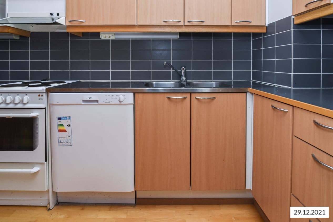 Keittiössä on valmiina astianpesukone ja kokille ja apulaisille on mukavasti tilaa. Kylpyhuoneessa on paikka pyykinpesukoneelle. Erillinen pikku-wc lisää sujuvuutta arkiaamuihin.