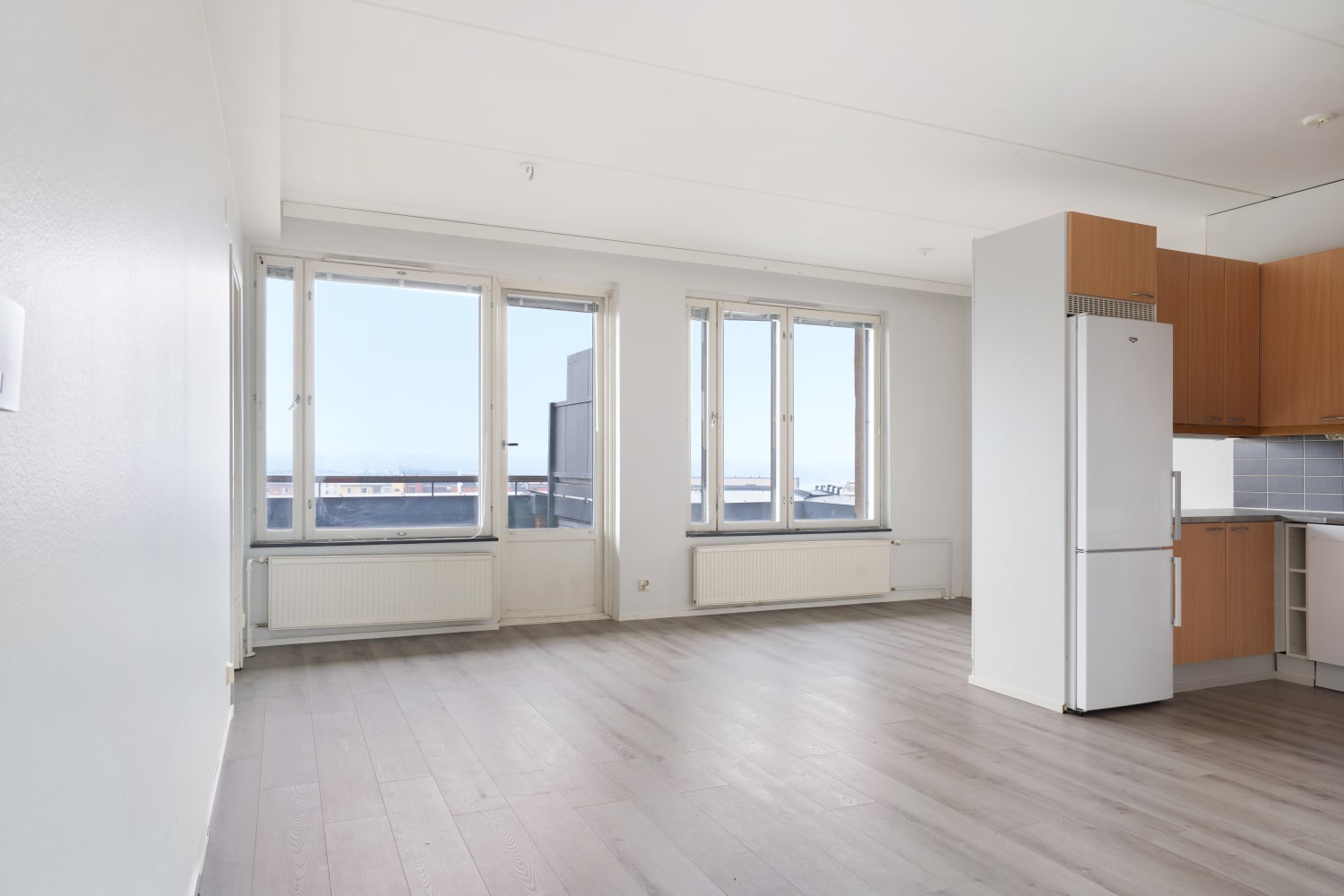 Lämpimiä puun sävyjä ja upeita näkymiä tarjoaa tämä tilava neljän huoneen vuokrakoti Herttoniemessä.