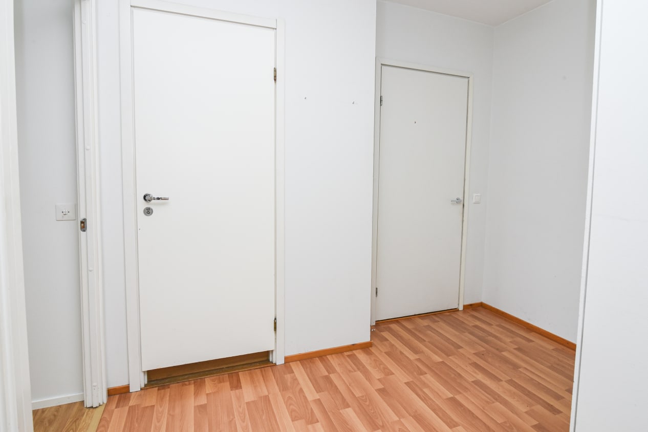 Asuinhuoneiden lattiamateriaali on laminaatti. Kylpyhuoneen seinät on kaakeloitu ja amme on vaihdettu suihkuksi.