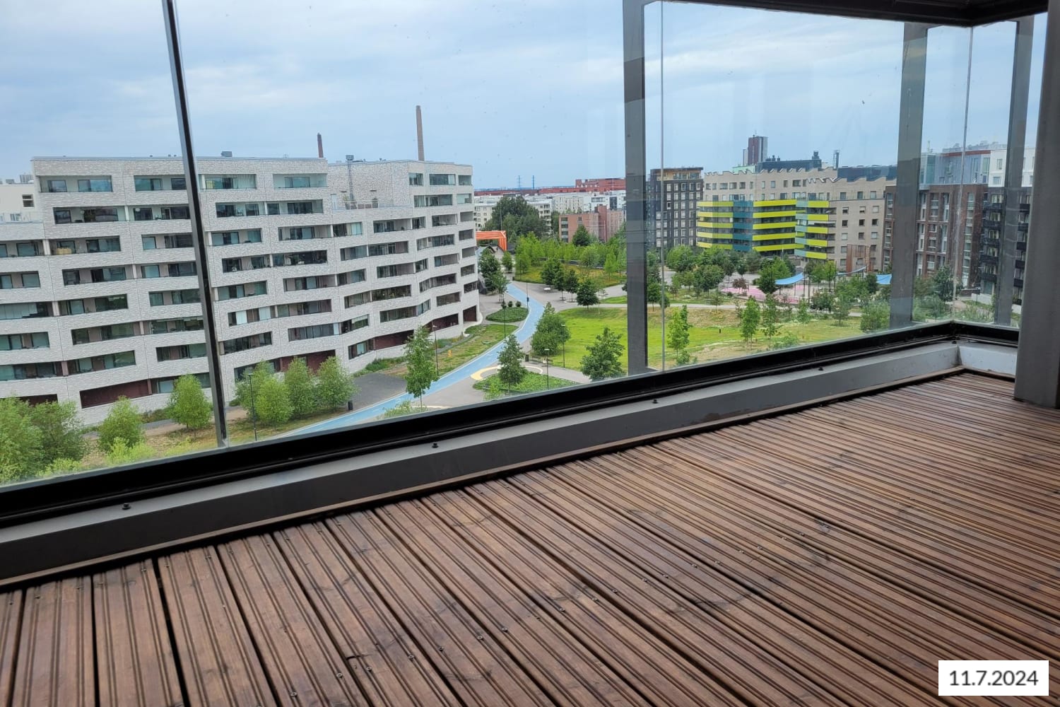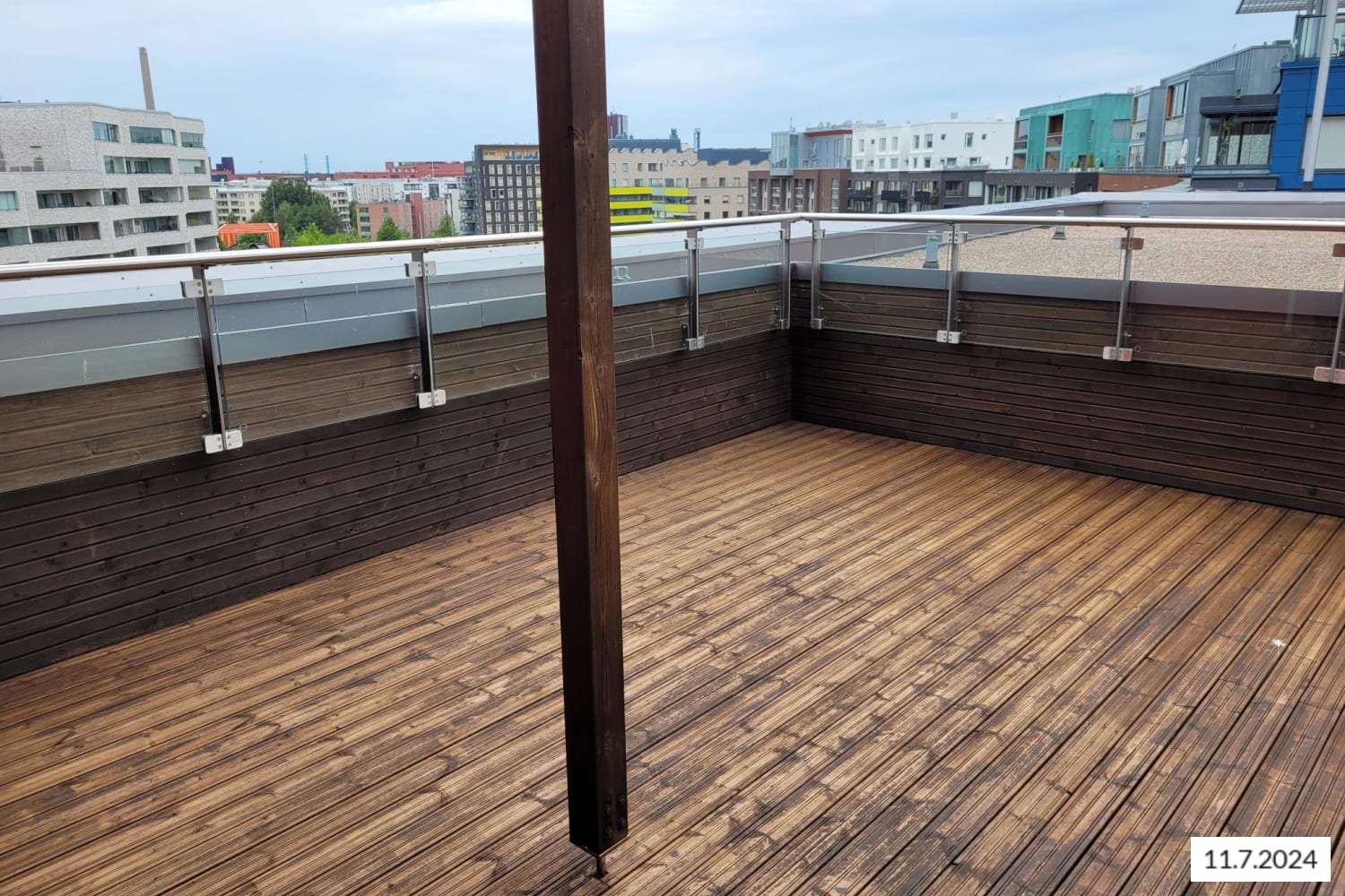 Ainutlaatuinen kahden kerroksen terassikoti saa paatuneenkin asunnonetsijän huokaisemaan ihastuksesta. Alakerran yhtenäinen tila tuo mieleen ateljeen ja olohuoneen kokoinen kattoterassi on todellinen hellekesän keskipiste!