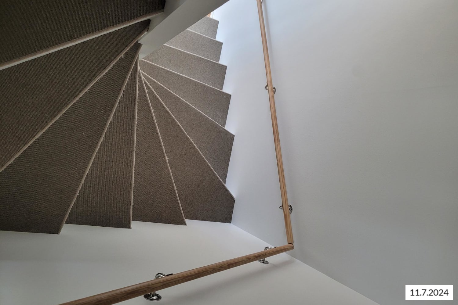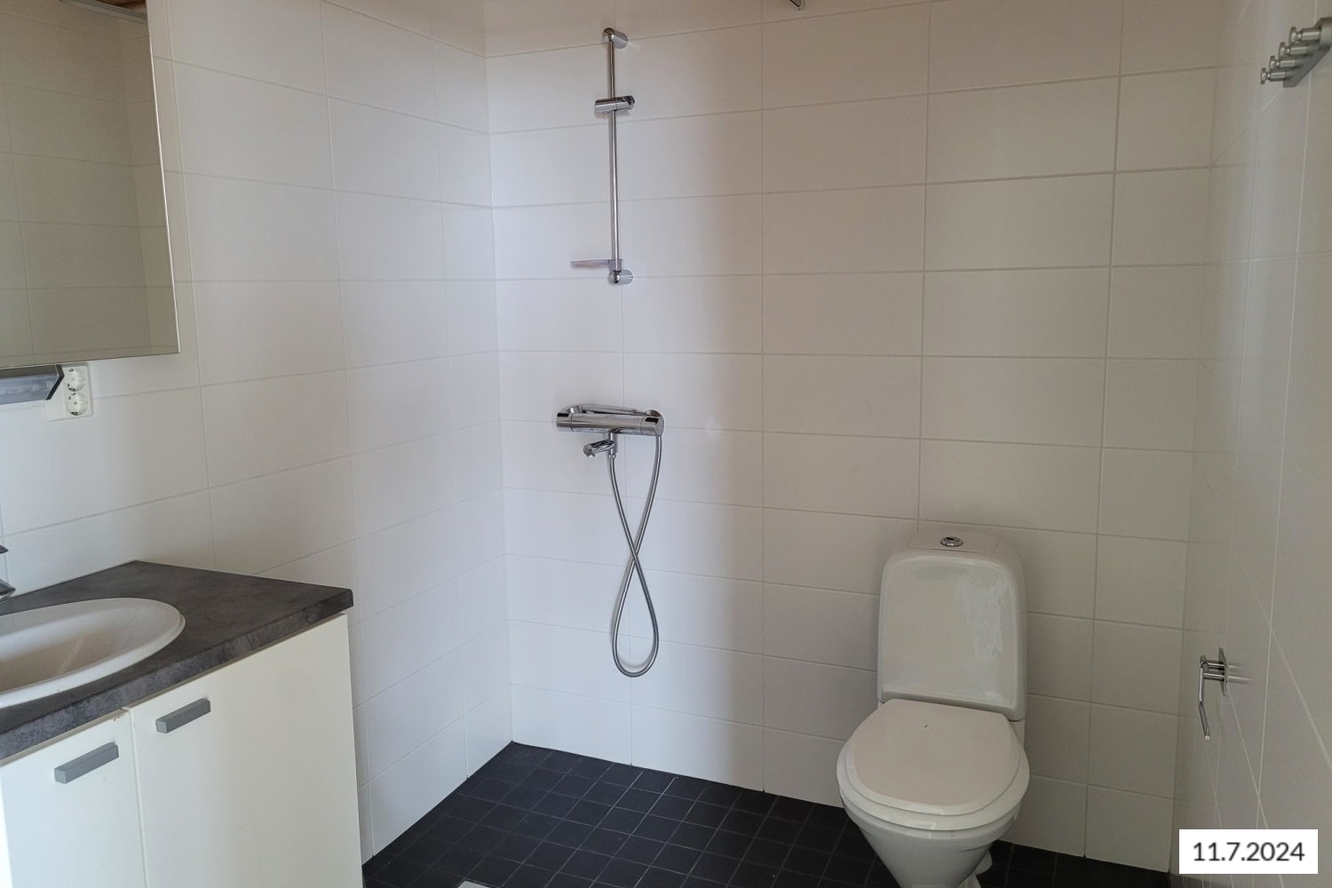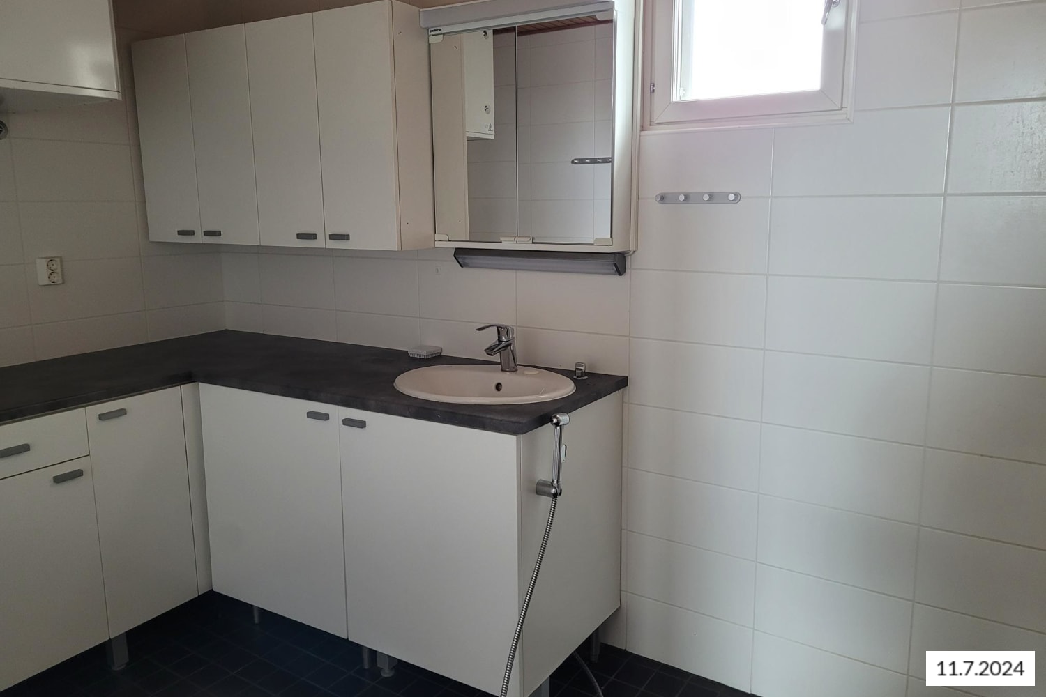 Asuinhuoneissa on upeat valkoöljytyt tammiparkettilattiat. Eleettömissä kylpyhuonessa on tummanharmaa laattalattia, valkoiseksi kaakeloidut seinät ja varpaiden alla ihana mukavuuslattialämmitys. Keittotilan sileäpintaiset kaapistot ovat ylhäällä valkoiset ja grafiitinharmaan pöytätason alla himmeänharmaat. Vakiovarusteina ovat selkeälinjainen keraaminen liesi kiertoilmauunitoiminnolla, jää-pakastinkaappi sekä astianpesukone, kaikki energialuokkaa A.