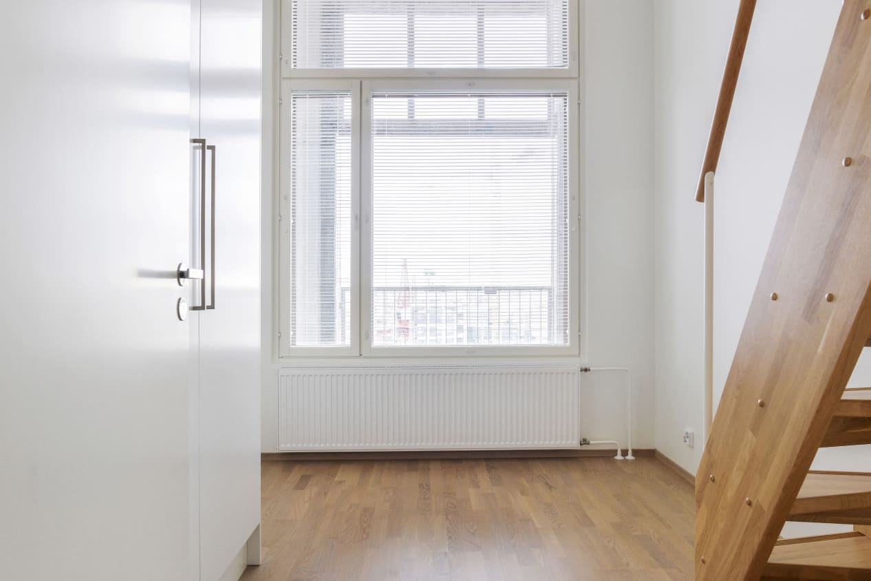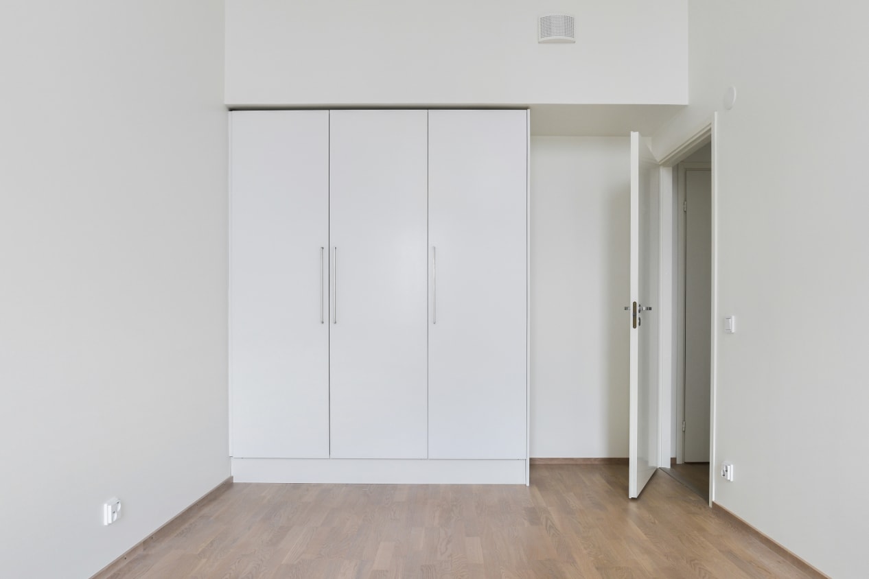 Asunnossa on kolme parvea, joista omaa rauhaa rakastava löytää ihanan piilopaikan. Eteisen ja makuuhuoneiden komerot ovat valkoisia ja ikkunoissa on valmiina sälekaihtimet. Lattiat ovat tammiparkettia ja seinät on maalattu valkoisiksi. Keittiössä kalusteet ovat raikkaan valkoiset ja ylä- ja alakaappien välinen tila sekä työtaso ovat harmaata laminaattia. Varustukseen kuuluu astianpesukone, induktiotasoliesi ja kalusteuuni sekä kylmälaitteet. Kodinkoneet ovat kalusteisiin integroituja.