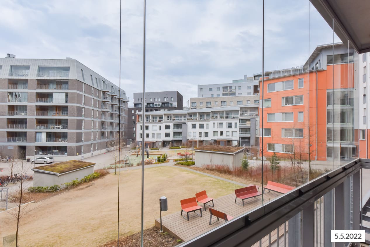 Selkeälinjaisen kodin olohuone ja avoin keittiö muodostavat avaran, yhtenäisen oleskelutilan, joka on helppo kalustaa mieleiseksi. Sisäänkäynnin tuntumassa on mukavan kokoinen vaatehuone arjen sujumista helpottamassa. Oman kodin saunassa kelpaa rentoutua päivän päätteeksi ja lasitetulla parvekkeella on mukava nauttia iltapäiväkahvit.