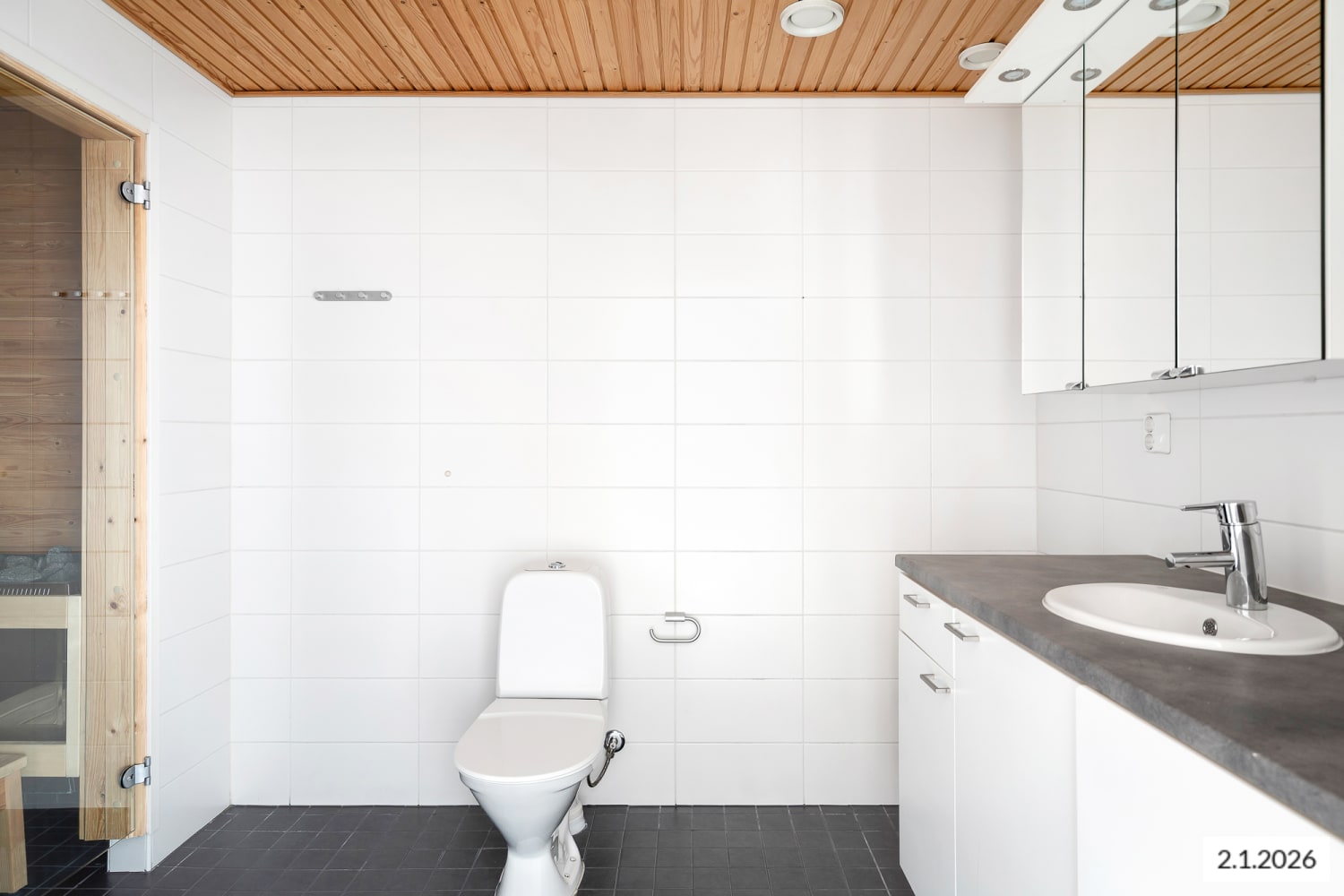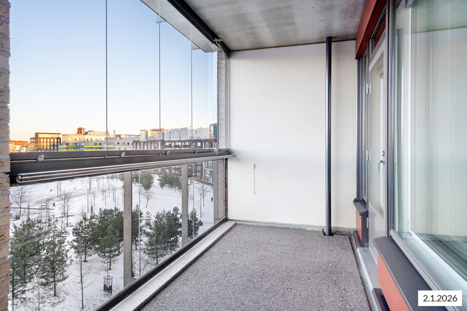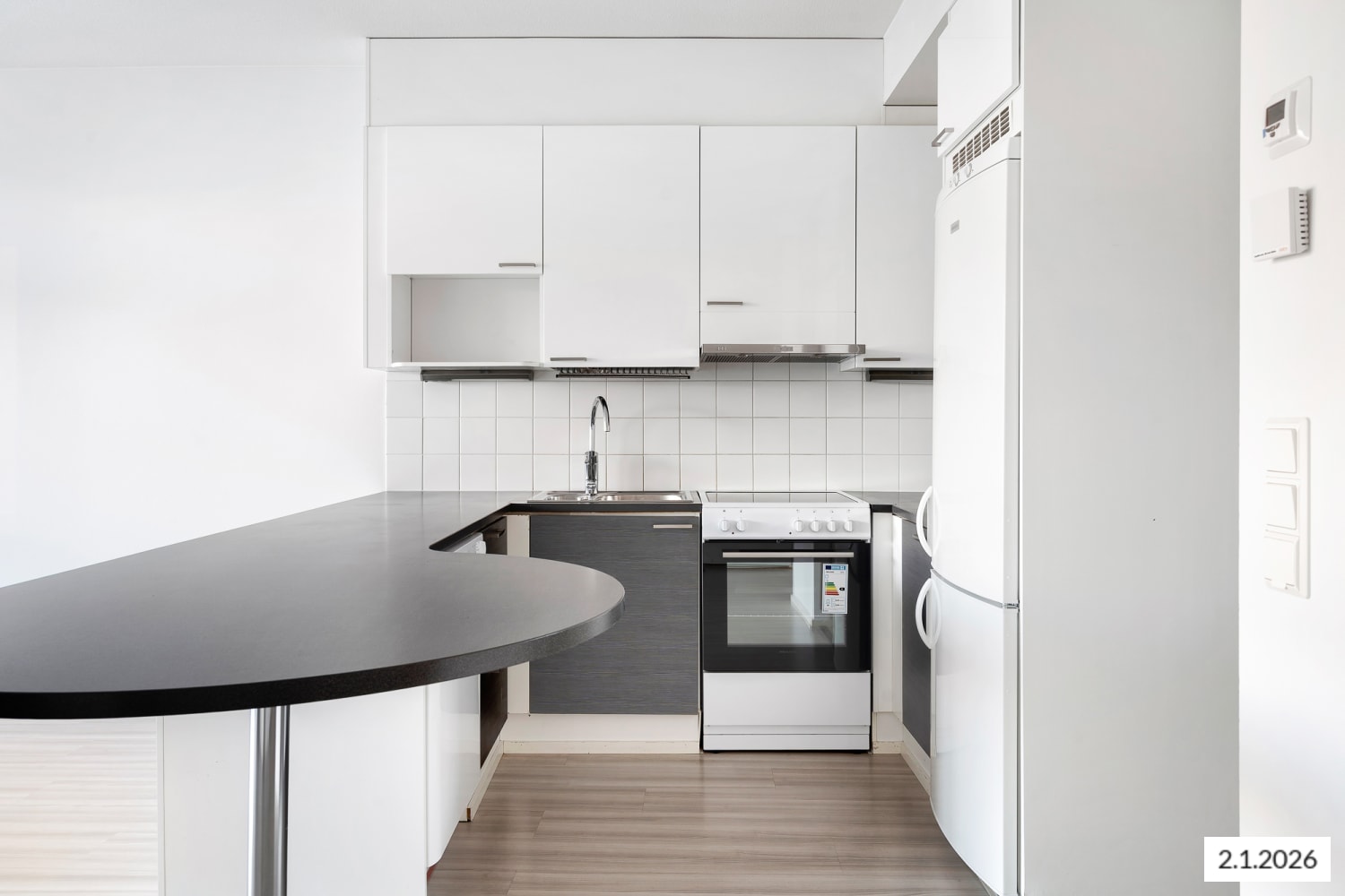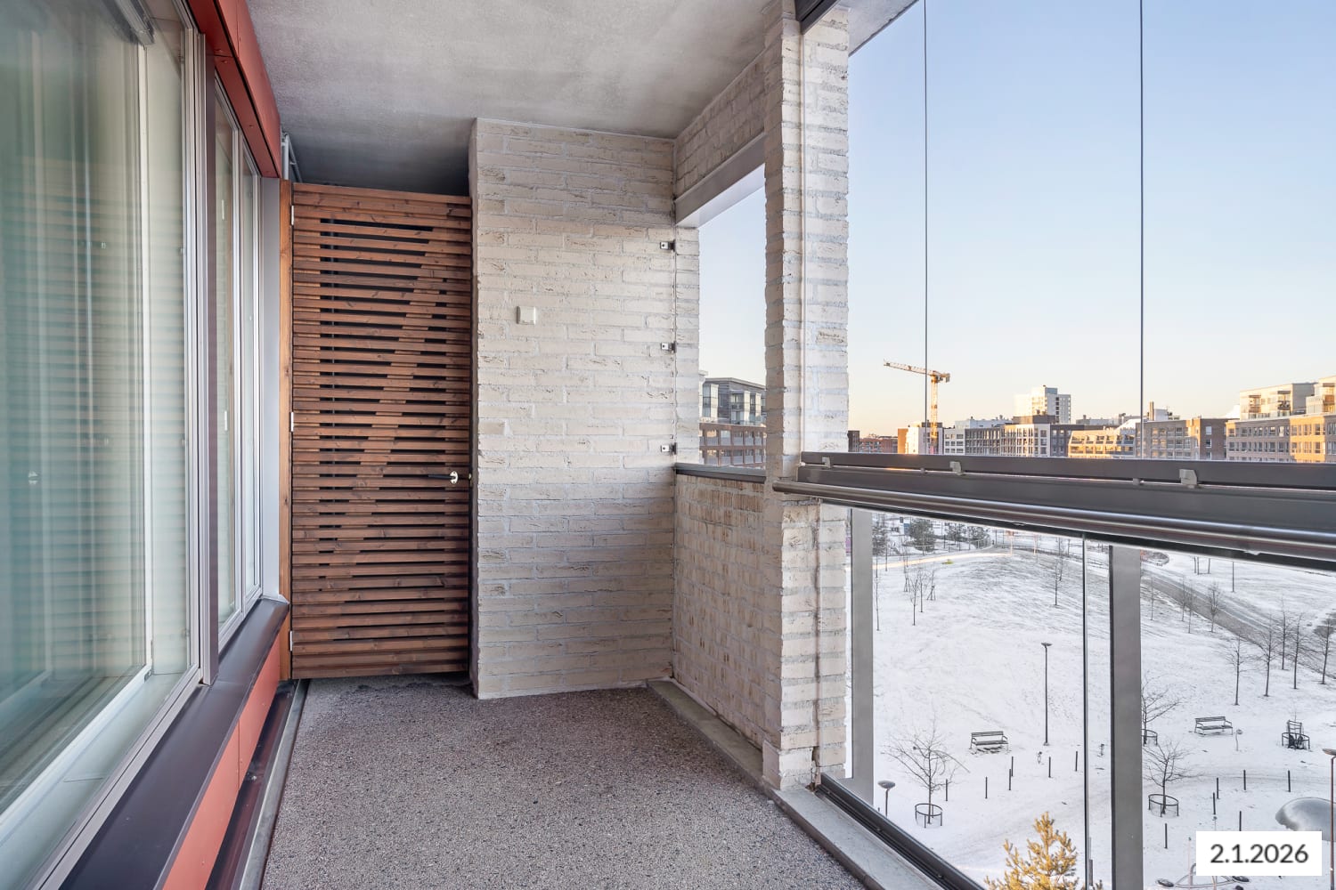 Raikas vaaleapintainen kaksio miellyttää suomalaiseen selkeyteen tottunutta sisustajaa. Tyylikkään tunnelman täydentävät viihtyisä keittiö ruokailutiloineen, rauhallinen makuuhuone vaatehuoneineen sekä iso monikäyttöinen ilta-auringossa kylpevä parveke, jolta avautuu komea näkymä yli Hyväntoivonpuiston. Asuinhuoneiden laminaattilattioissa on valkolakatun tammen tuntua. Kylpyhuoneessa on tummanharmaa laattalattia, valkoiseksi kaakeloidut seinät ja varpaiden alla ihana mukavuuslattialämmitys. Modernisti valko-harmaan keittiön erikoisuutena on kiinteä pöytä, jota ahkera ruoanlaittaja voi hyödyntää lisätilana ja muut aamiaispöytänä. Vakiovarusteina ovat keraaminen liesi kiertoilmauunitoiminnolla, jää-pakastinkaappi sekä astianpesukone, kaikki energialuokkaa A. Luhtikäytävän puoleisessa ikkunassa on sälekaihdin.