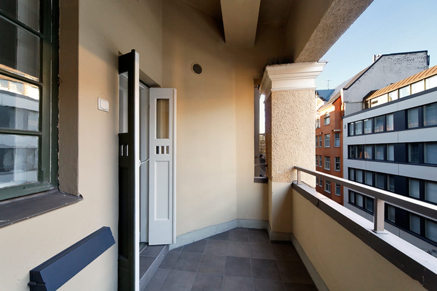 Tämä yksiö on todellinen uniikkikappale. Pohjaratkaisultaan toimivassa asunnossa on käytännöllinen alkovi ja hyvin tilaa pienelle ruokapöydälle ja sohvaryhmälle. Asunnon katseenvangitsijana toimii klassisen kaunis parveke, joka avautuu Eteläisen Makasiinikadun puolelle.