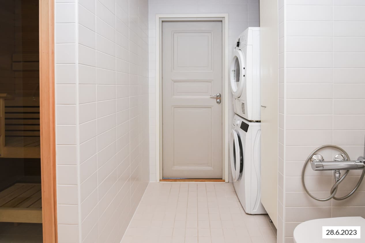 Läpitalon huoneiston tunnelma on tyylikkään kodikas. Asunnon keskipisteenä toimii hyvin varusteltu keittiö sisäpihalle avautuvine parvekkeineen. Pienempi makuuhuone sopii mainiosti myös työhuoneeksi ja isommassa makuuhuoneessa on reilusti säilytystilaa. Oma sauna ja tilava kylpyhuone lisäävät kodin ylellisyyden tuntua.