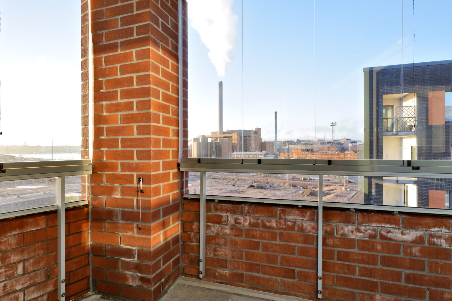 Kalasataman Galleriatalon kaikissa kolmioissa on persoonallinen pohjaratkaisu. Tässä eteläpäädyn kodissa keskipisteenä on ruokailutila ja isoon olohuoneeseen mahtuu taatusti iso sohvaryhmä. Lasitettu parveke avautuu ilta-aurinkoon Junonkadun ja Polariksenkadun kulmaan.
