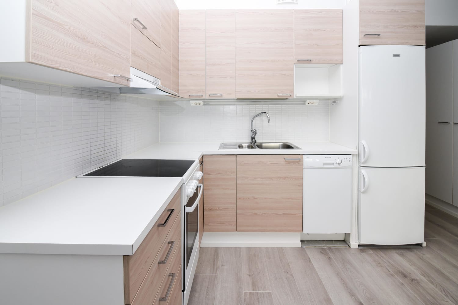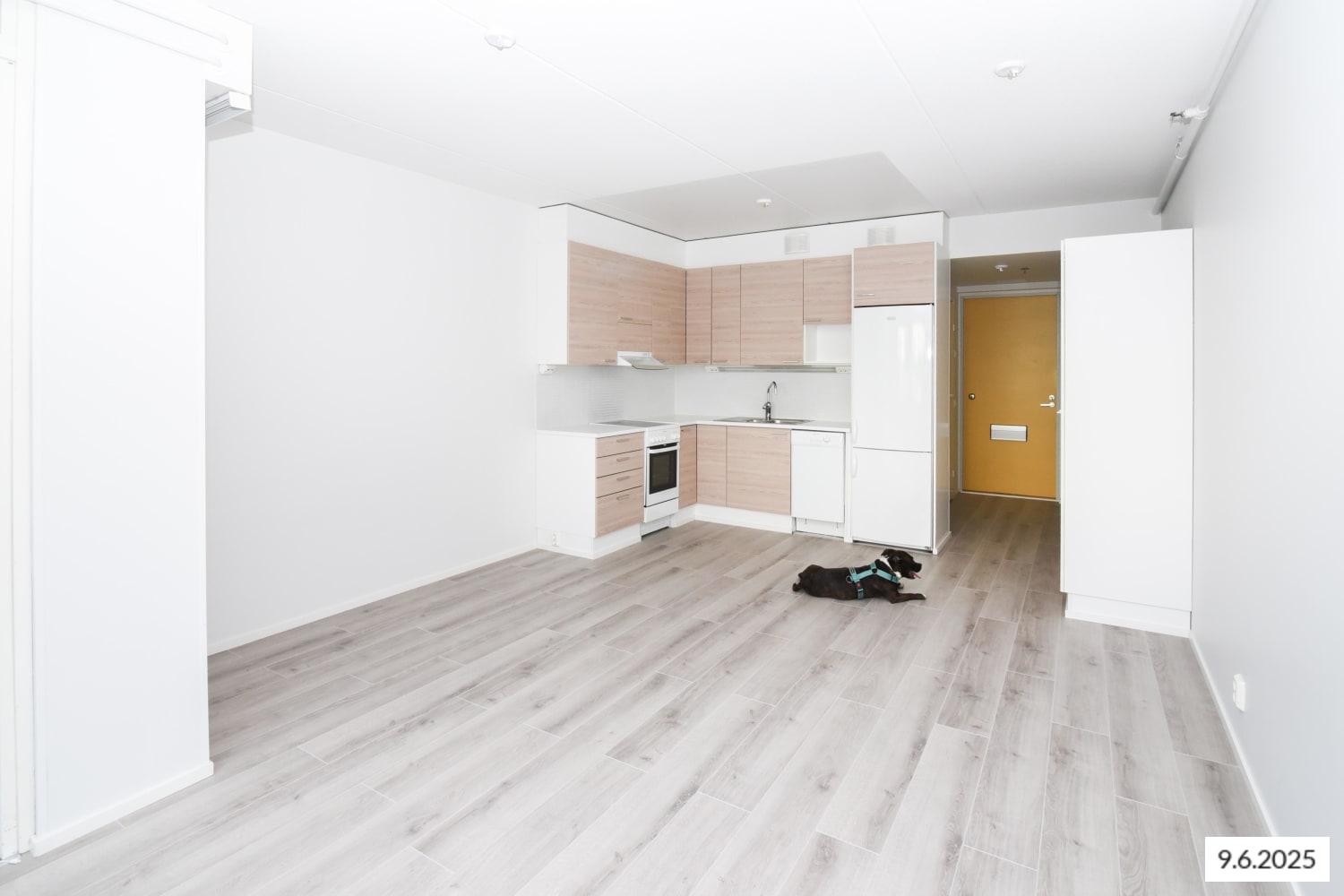 Asunnon skandinaavisen seesteinen värimaailma on toteutettu laadukkaasti. Lattiat ovat valkaistua tammilaminaattia ja kylpyhuoneen valkoiseksi kaakeloituja seiniä pehmentää luonnonvalkoinen klinkkerilattia. Keittiökaapistoissa on kaunis vaalea saarnipuukuvio ja tyylikkäät vetimet harjattua metallia. Kalusteväleissä on valkoinen sauvakaakelointi ja työtasot ovat valkoista laminaattia. Varusteina keraaminen liesi, astianpesukone sekä jää-pakastinkaappi, kaikki valkoisia. Sähköiset palovaroittimet ja sprinklerijärjestelmä tuovat lisäturvaa asumiseen.