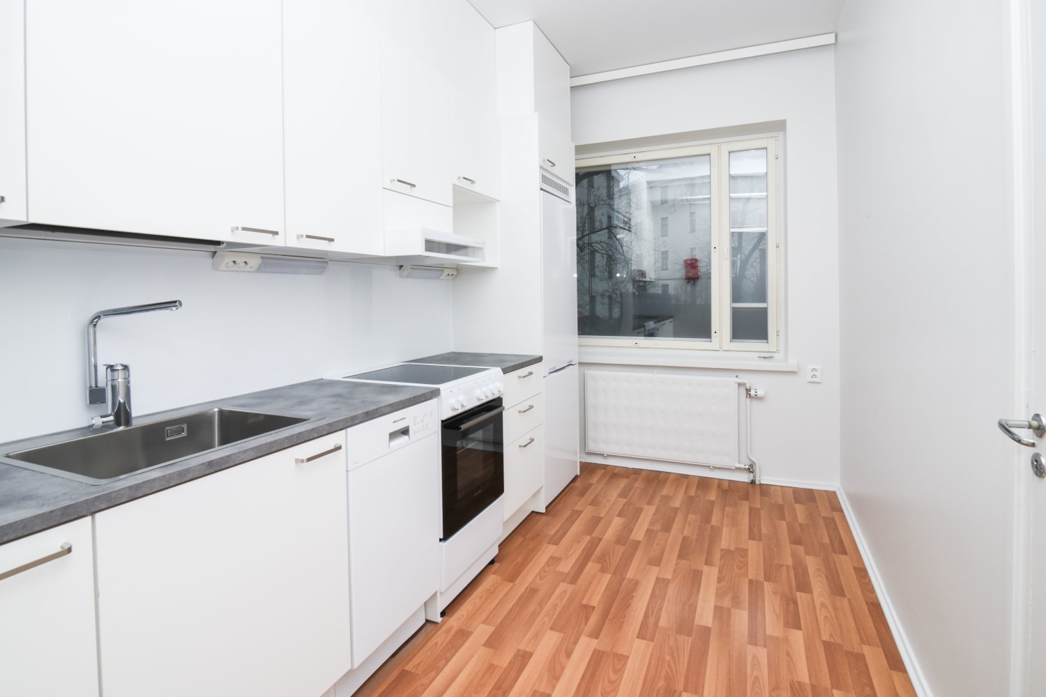 Seesteinen kaupunkikoti sijaitsee Torkkelinmäen kupeessa ja sen ikkunoista avautuu näkymä pieneen puistoon. Näppärä, alkovillinen olohuone helpottaa sisustamista ja keittiöön mahtuu mukavasti pieni ruokapöytä. Asunnon ikkunoista avautuu näkymä kadun ja pienen puistikon puolelle.