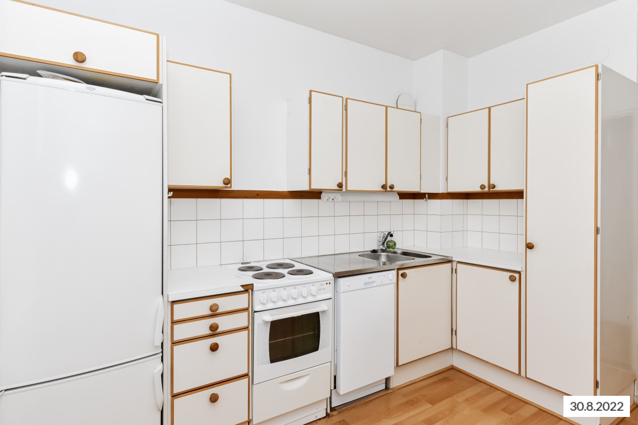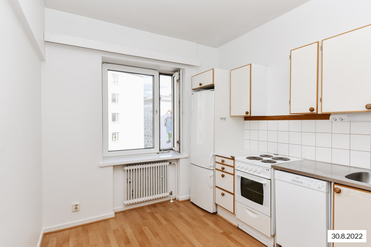 Kävelymatkan päässä Sörnäisten metroasemasta sijaitsevassa perinteisessä kaupunkikodissa on klassinen pohjaratkaisu tilavine olohuoneineen ja kiinteine kaappeineen. Pieni parveke avautuu etelälounaaseen pihalle.