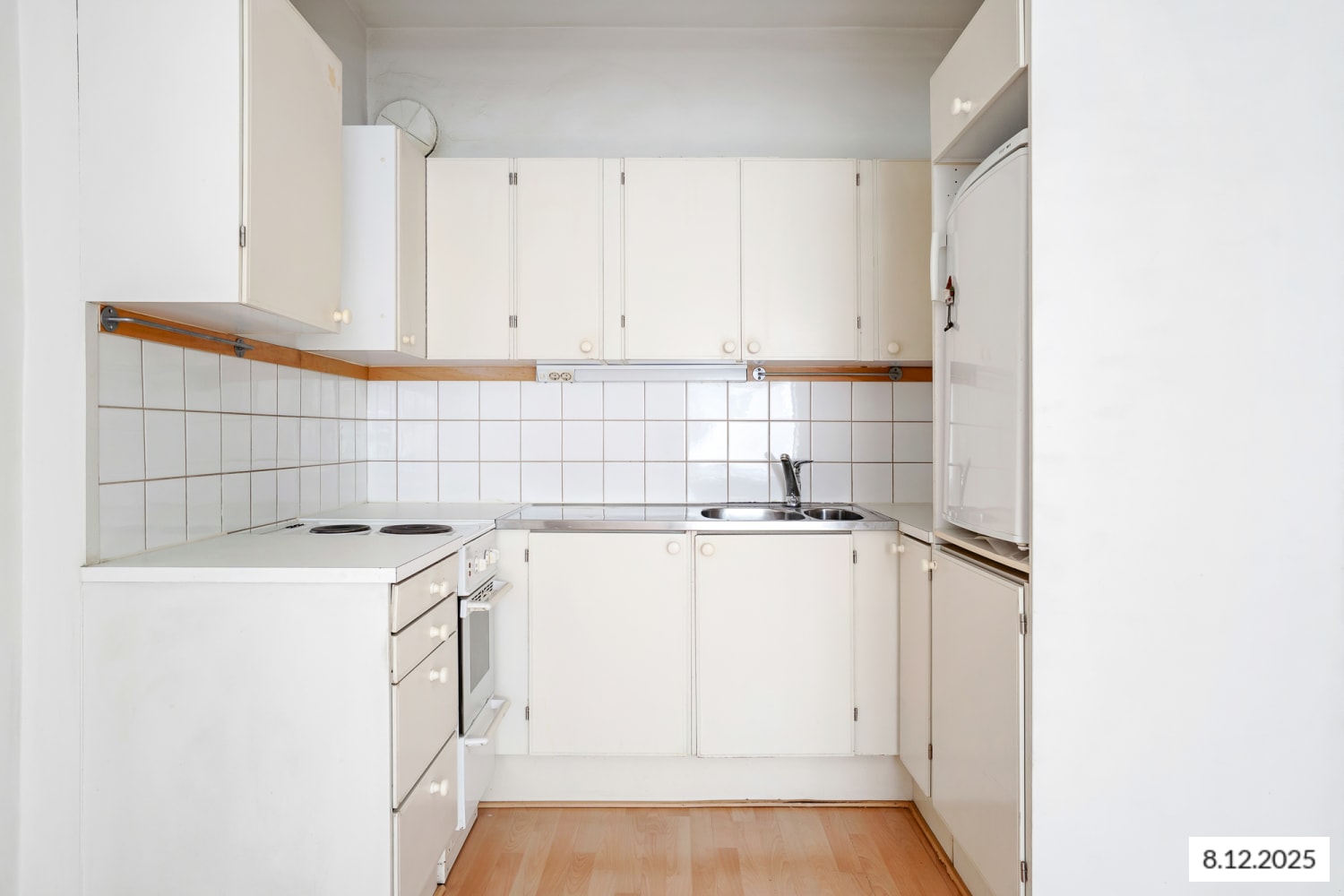 Asuinhuoneiden lattiat ovat helppohoitoista laminaattia. Kylpyhuoneessa lattia on kaakeloitu. Keittokomerossa on jääkaappi ja kaksilevyinen sähköliesi.
