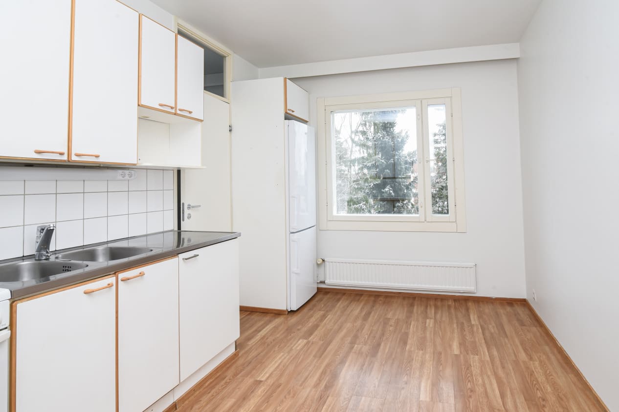 Keittiössä on jää-pakastinkaappi ja tilaa astianpesukoneellesi.