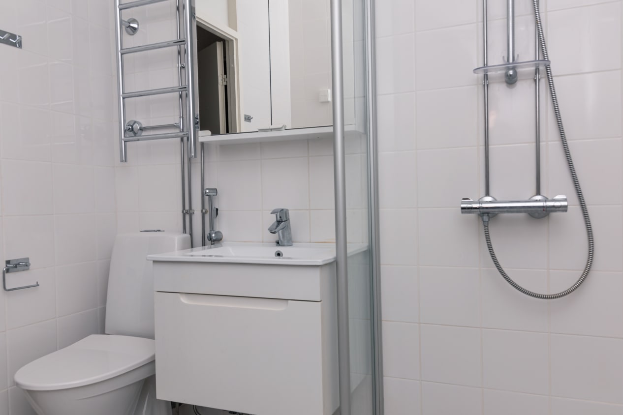Kylpyhuoneissa on tilaa pesukoneelle. Taloyhtiöllä on suojaisa ja vehreä leikkipiha, jossa on reilusti oleskelutilaa myös iäkkäämmille asukkaille.
