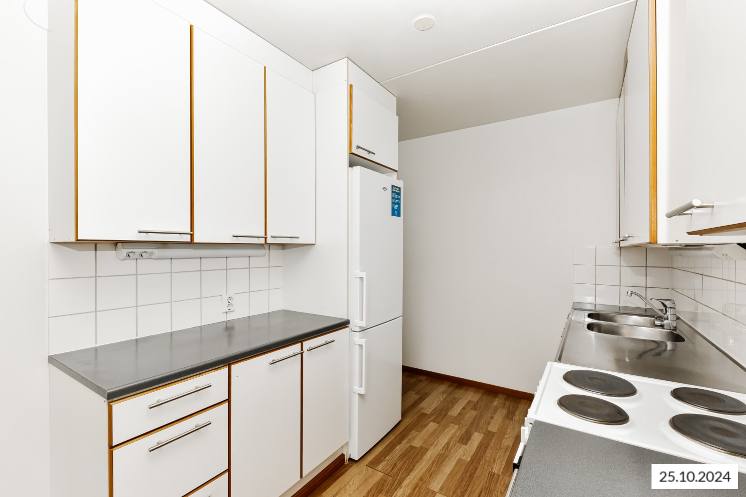 Asuinhuoneissa on kauniit tammensävyiset laminaattilattiat. Kylpyhuoneessa on laattalattia ja kaakeloidut seinät sekä liitännät pyykinpesukoneelle. Keittiössä on jää-viileäkaappi ja nelilevyinen sähköliesi. Keittiöön on mahdollista asentaa astianpesukone.