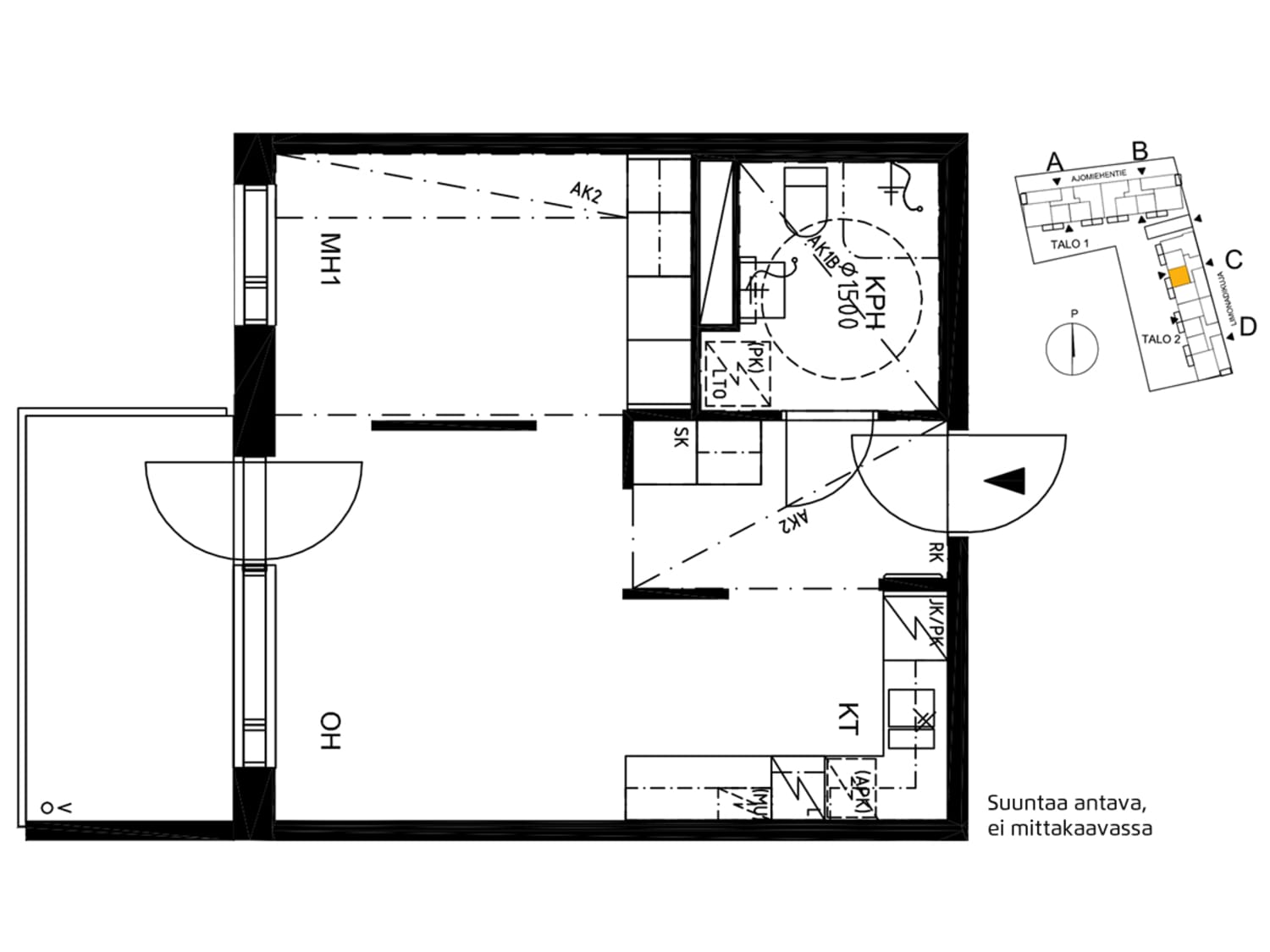Ajomiehentien ja Limonadikujan kulmassa on kaksi kerrostaloa, joissa on porrastetusti kolmesta kuuteen kerrosta. Asuntojen pohjaratkaisut ovat selkeitä ja avaria, keittiöt avautuvat oleskelutiloihin. Keittiökalusteet ovat valkoisia ja työtasot ovat tumman puun sävyistä laminaattia. Tilavissa kylpyhuoneissa on pesukonetta varten tilavaraus ja liitännät. Talojen alakerroksissa on varastotilojen lisäksi yhteiset kerhotilat, pesulat ja kuivaushuoneet. Autopaikat ovat talon alla pysäköintihallissa.