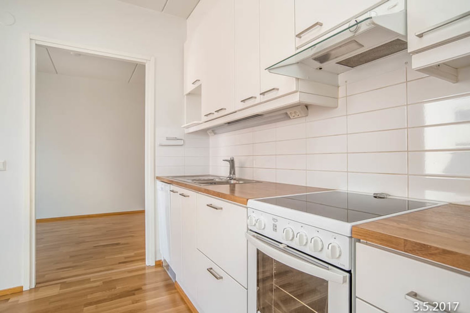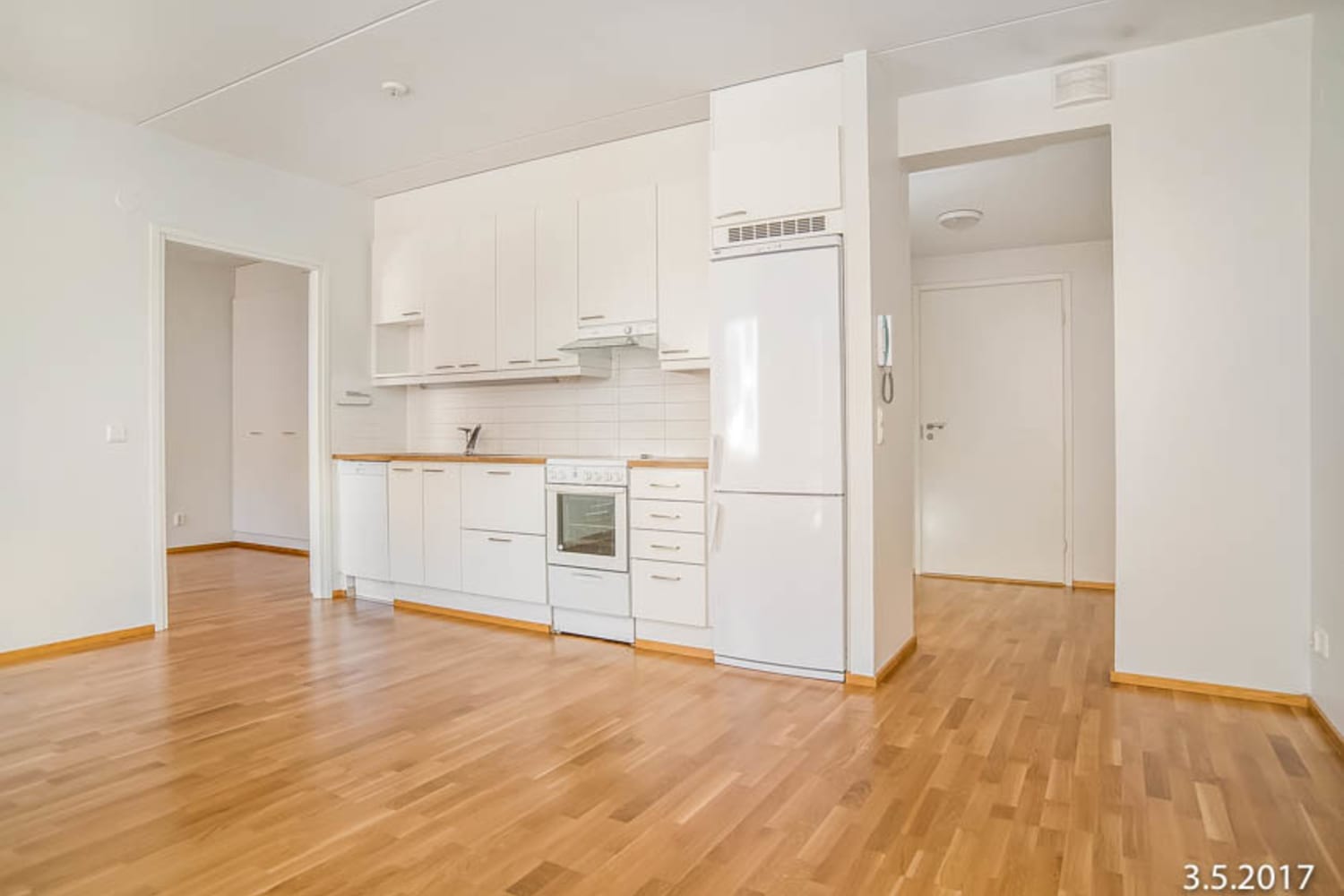 Asuinhuoneiden lattiat ovat tammiparkettia. Kylpyhuoneessa on mukavuuslattialämmitys, vaaleanharmaa laattalattia ja isolla valkoisella kaakelilla laatoitetut seinät. Puhtaanvalkoisia keittiökaapistoja täydentää kaunis antiikkitammilaminaattinen työtaso. Vakiovarustukseen kuuluvat astianpesukone, jää-pakastinkaappi ja keraaminen liesi.