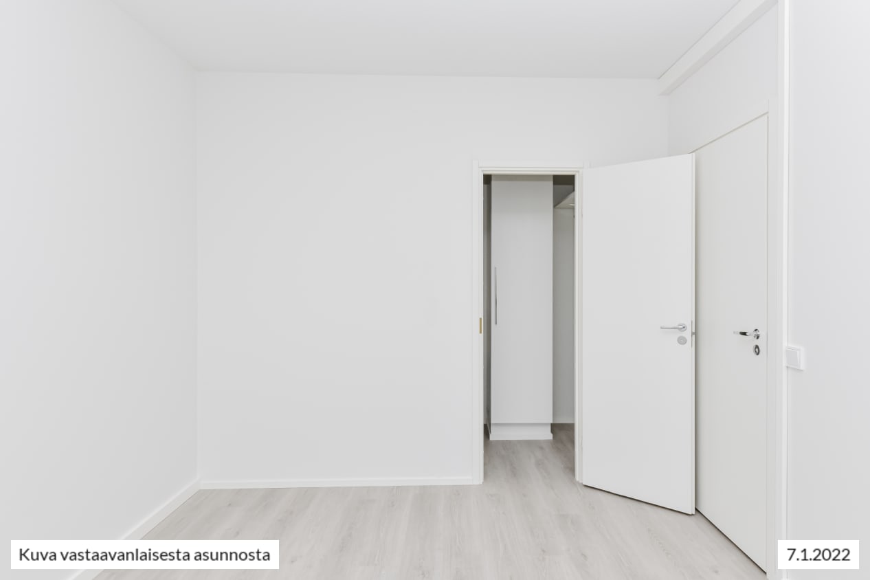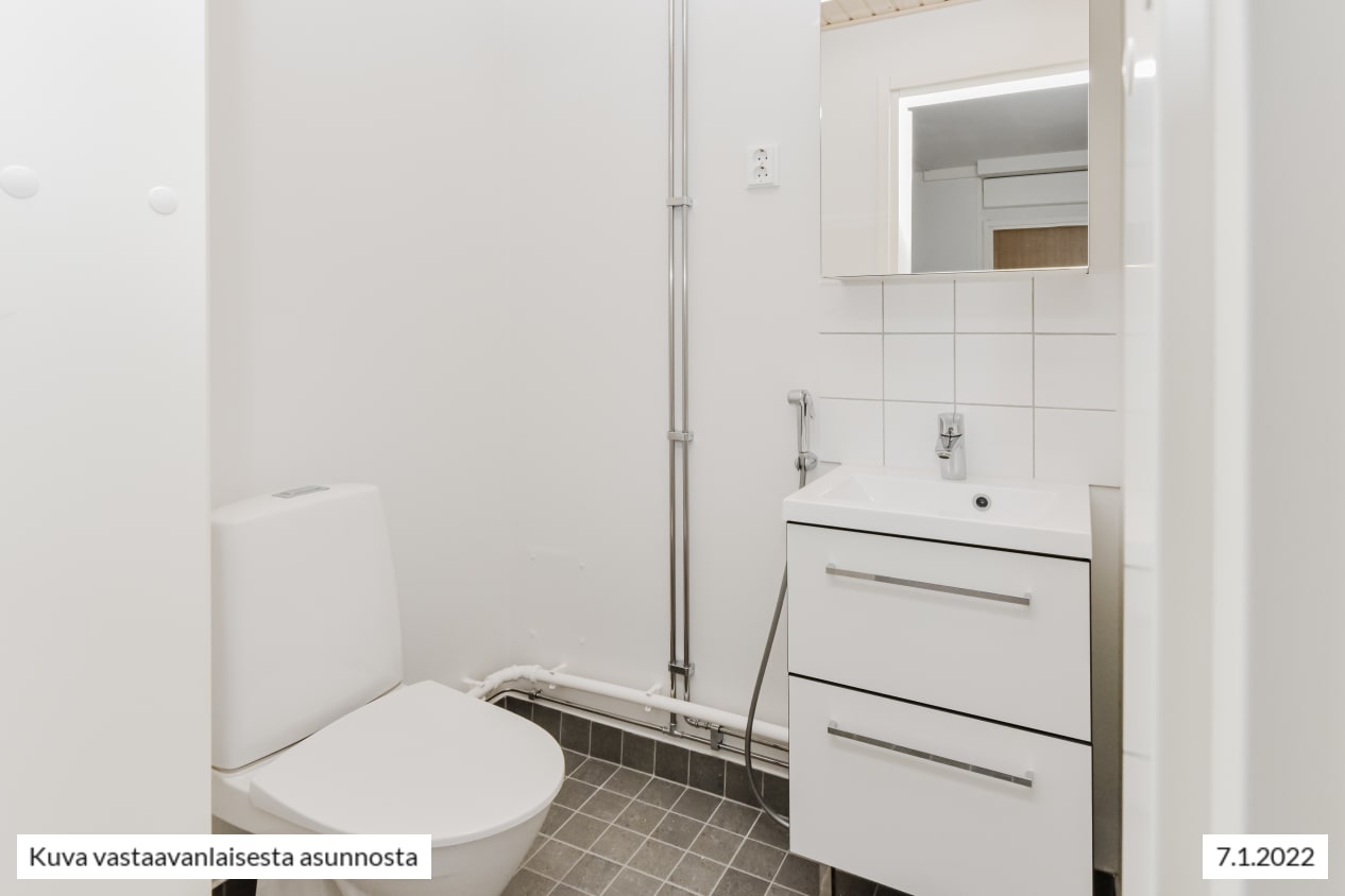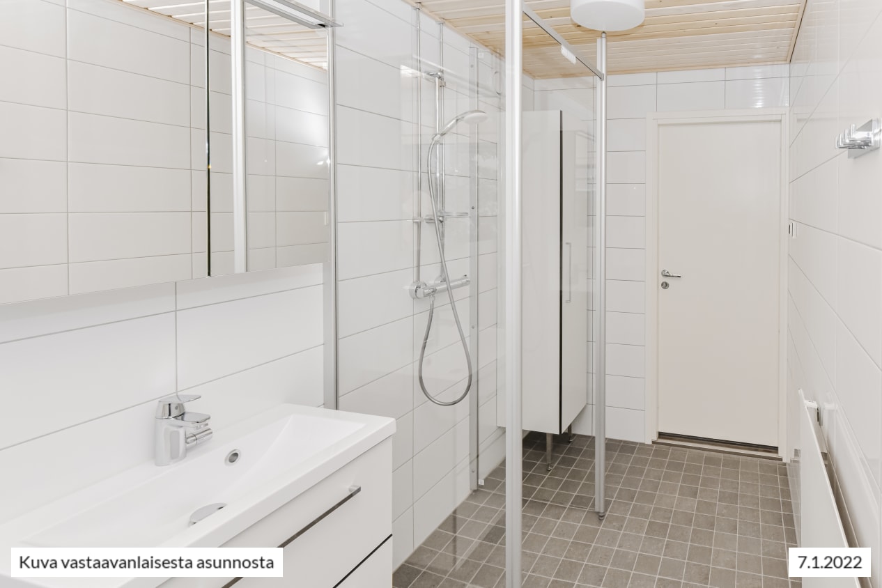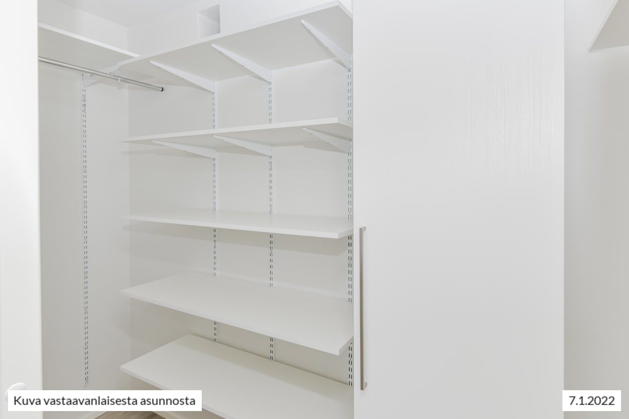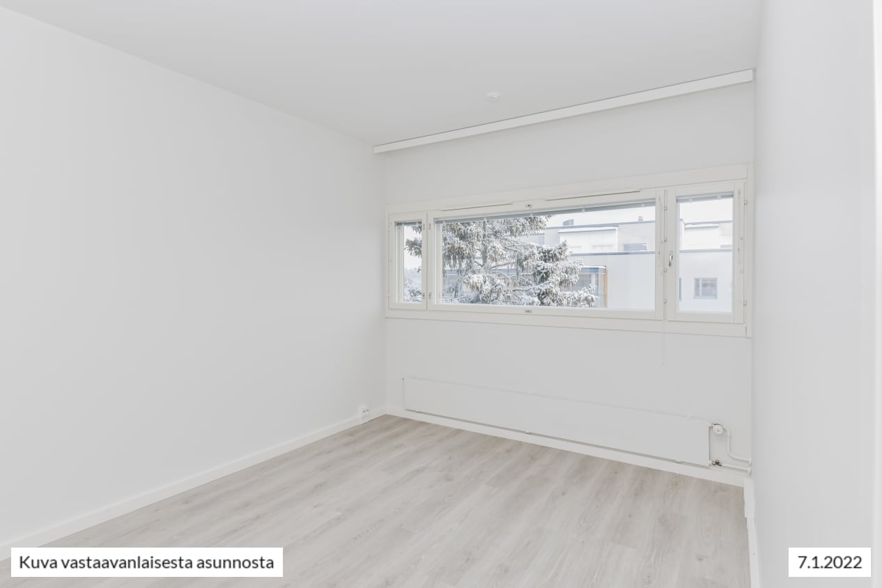 Remontoidun, valoisan asunnon ikkunat aukeavat molemmille puolin taloa. Selkeän pohjaratkaisun ansiosta sisustat oman näköisesi kodin helposti. Lattia on vaaleaa tammilaminaattia ja seinät on maalattu valkoisiksi. Erillisessä keittiössä kotikokki mahtuu puuhailemaan ja tilaan sopii myös ruokapöytä. Keittiön kaapistot ovat valkoiset. Ylä- ja alakaappien välinen tila ja työtaso ovat harmaata laminaattia. Varustukseen kuuluu keraaminen liesi, liesikupu, jääkaappipakastin ja astianpesukone. Kodinkoneet ovat valkoisia. Tilavan olohuoneen jatkona on ilta-aurinkoon avautuva lasitettu parveke ja toinen parveke on viereisessä makuuhuoneessa. Ikkunallisessa kylpyhuoneessa ja erillisessä wc:ssä on valkoiset SATOn Kide-malliston kalusteet. Niiden seinät ovat valkoista laattaa ja lattia on harmaa. Pyykinpesukoneelle löytyy oma paikka kylpyhuoneesta. Runsaasti säilytystilaa löytyy makuuhuoneissa olevista vaatehuoneista.