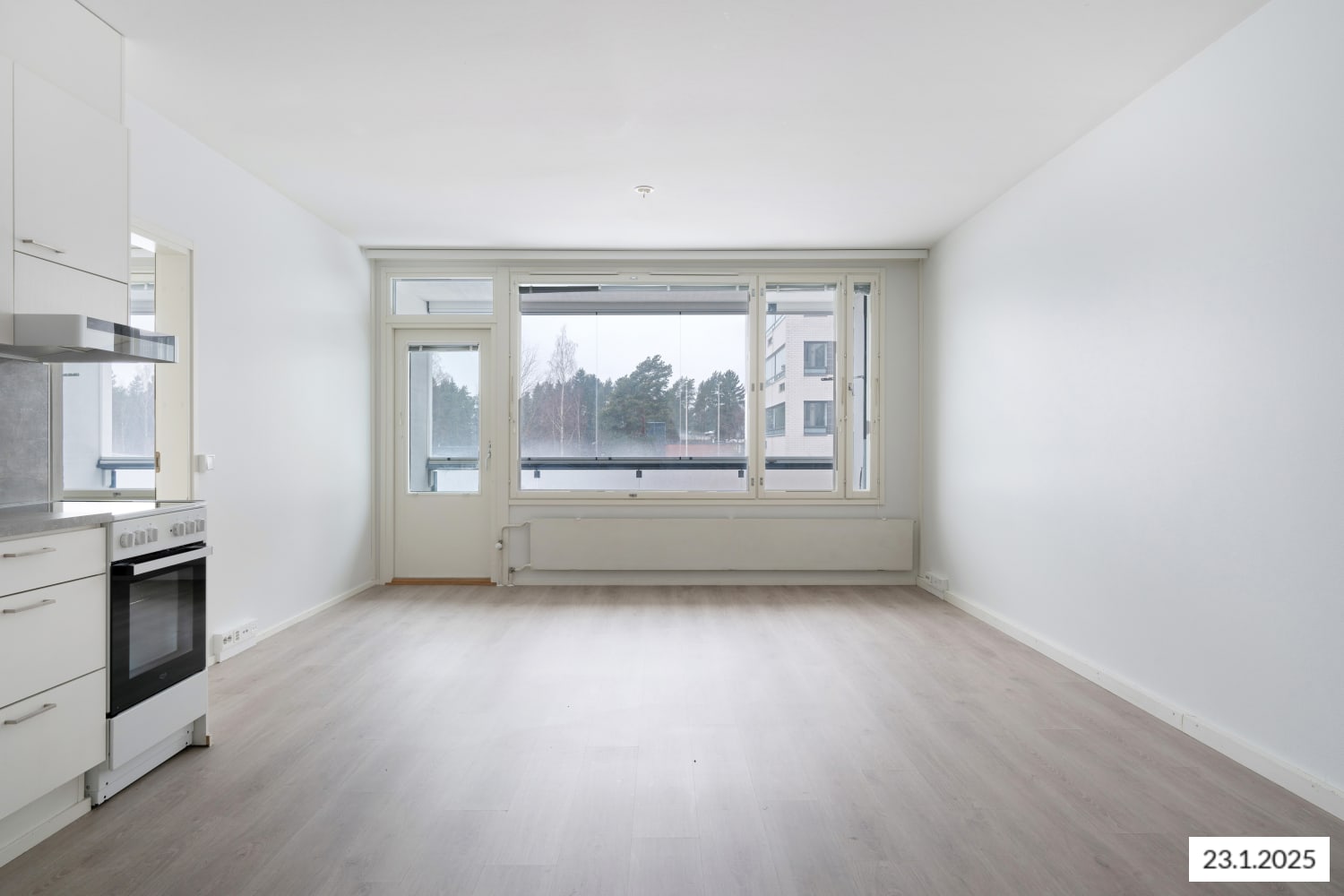 Remontoidun, valoisan asunnon ikkunat aukeavat molemmille puolin taloa. Selkeän pohjaratkaisun ansiosta sisustat oman näköisesi kodin helposti. Tilava olohuone ja avoin keittiö muodostavat avaran oleskelualueen, joka jatkuu ilta-aurinkoon suuntautuvalle lasitetulle parvekkeelle. Lisäksi viereisessä makuuhuoneessa on toinen parveke. Kodin lattiat ovat vaaleaa tammilaminaattia ja seinät on maalattu valkoisiksi.