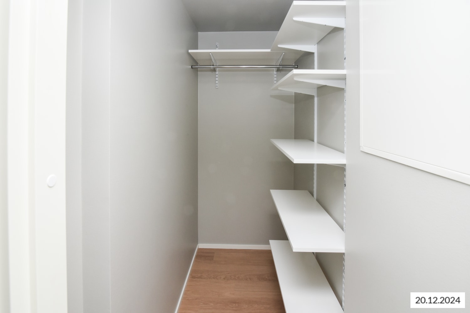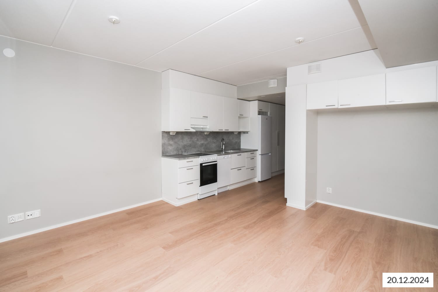 Uuden uutukainen yksiö viehättää avoimella selkeydellään, johon ilmavuutta ja lisätilaa tuo reilunkokoinen lasitettu parveke, joka avautuu ilta-auringon puolelle. Eteisessä on reilusti säilytystilaa erillisessä varastossa. Ikkunassa on sälekaihtimet valmiina. Lattia on vaaleaa tammilaminaattia ja seinät on maalattu vaalean harmaalla. Keittiökaapistot ovat raikkaan valkoiset ja ylä- ja alakaappien välinen tila sekä työtaso ovat harmaata laminaattia. Varustukseen kuuluu astianpesukone, keraaminen liesi ja jääkaappipakastin. Kylpyhuoneessa on valkoiset SATOn Kide-malliston kalusteet. Seinät ovat valkoista laattaa ja lattia on harmaa. Pesukoneelle ja kuivausrummulle on paikka.
