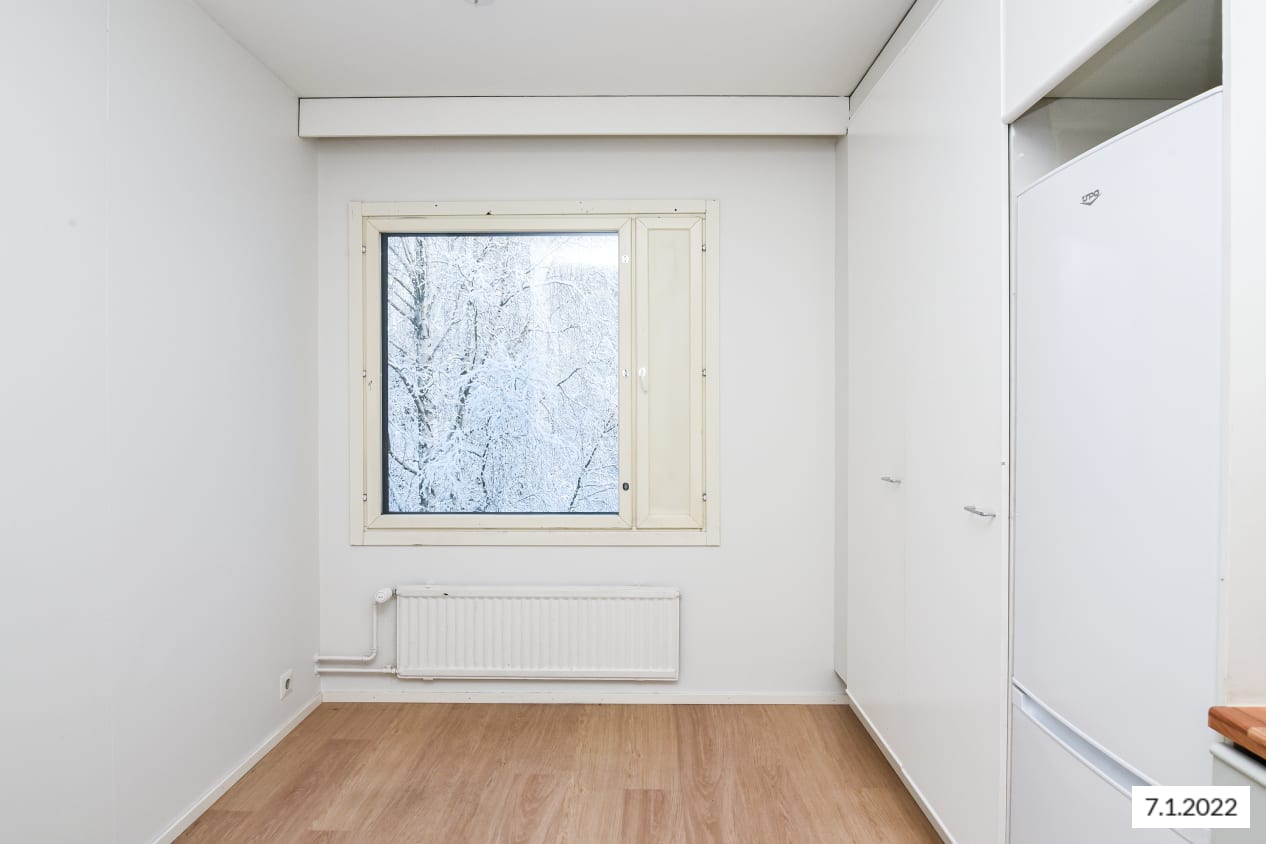 Vehreän Untamalanpuiston laidalla vapautuneessa kodikkaassa kaksiossa on ilta-aurinkoon Tanhuantielle avautuva parveke. Ylimmän kerroksen sijainti tekee asunnosta rauhallisen ja valoisan.