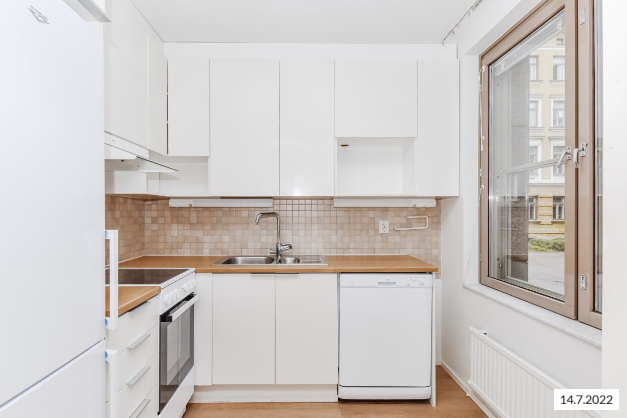 Erittäin tilava ja toimiva koti, hyvällä sijainnilla. Tilavassa ikkunallisessa keittokomerossa on ilo kokkailla ja valmistella aterioita. Vaatehuone tarjoaa aina tarpeellista säilytystilaa. Avarassa kylpyhuoneessa paikka pesukoneelle. Taloyhtiössä suuri piha. Sauna ja pesutupa halutessasi myös käyttöösi. Liikkumaan pääset näppärästi mm. ratikalla ja kävellen olet hetkessä Kauppatorin hulinassa.